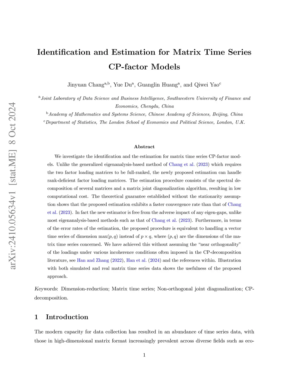 We propose a new method for identifying and estimating the CP-factor models for matrix time series. Unlike the generalized eigenanalysis-based method of Chang et al. (2023) for which the convergence rates of the associated estimators may suffer from small eigengaps as the asymptotic theory is based on some matrix perturbation analysis, the proposed new method enjoys faster convergence rates which are free from any eigengaps. It achieves this by turning the problem into a joint diagonalization of several matrices whose elements are determined by a basis of a linear system, and by choosing the basis carefully to avoid near co-linearity (see Proposition 5 and Section 4.3). Furthermore, unlike Chang et al. (2023) which requires the two factor loading matrices to be full-ranked, the proposed new method can handle rank-deficient factor loading matrices. Illustration with both simulated and real matrix time series data shows the advantages of the proposed new method.