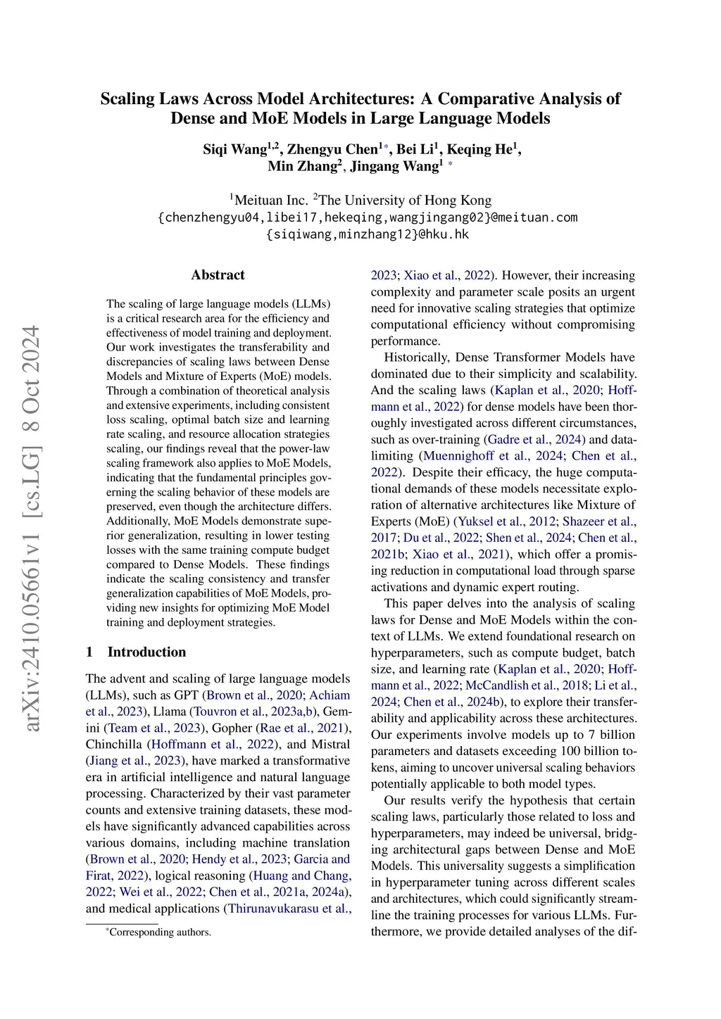 Scaling Laws Across Model Architectures: A Comparative Analysis of Dense