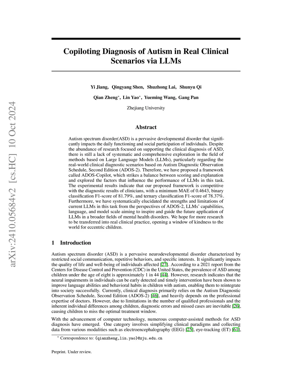 Copiloting Diagnosis of Autism in Real Clinical Scenarios via LLMs