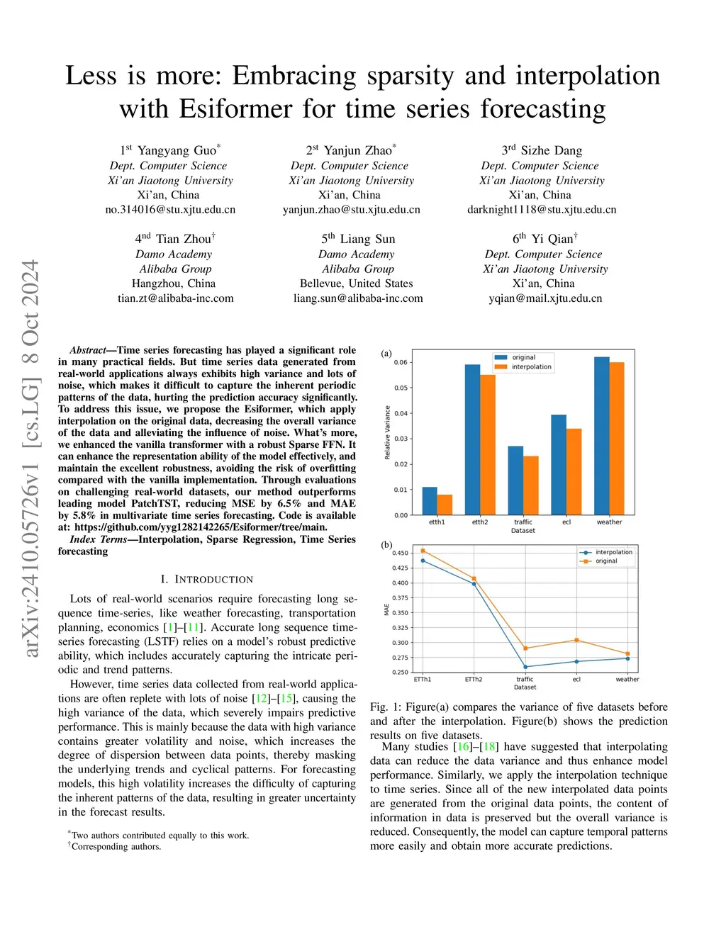 Time series forecasting has played a significant role in many practical fields. But time series data generated from real-world applications always exhibits high variance and lots of noise, which makes it difficult to capture the inherent periodic patterns of the data, hurting the prediction accuracy significantly. To address this issue, we propose the Esiformer, which apply interpolation on the original data, decreasing the overall variance of the data and alleviating the influence of noise. What's more, we enhanced the vanilla transformer with a robust Sparse FFN. It can enhance the representation ability of the model effectively, and maintain the excellent robustness, avoiding the risk of overfitting compared with the vanilla implementation. Through evaluations on challenging real-world datasets, our method outperforms leading model PatchTST, reducing MSE by 6.5% and MAE by 5.8% in multivariate time series forecasting. Code is available at: https://github.com/yyg1282142265/Esiformer/tree/main.