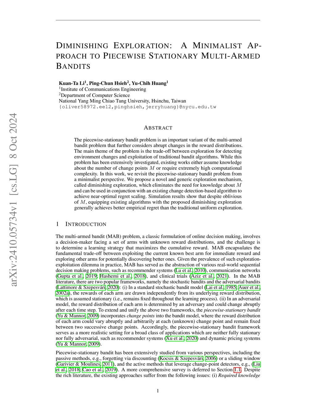 Diminishing Exploration: A Minimalist Approach to Piecewise Stationary