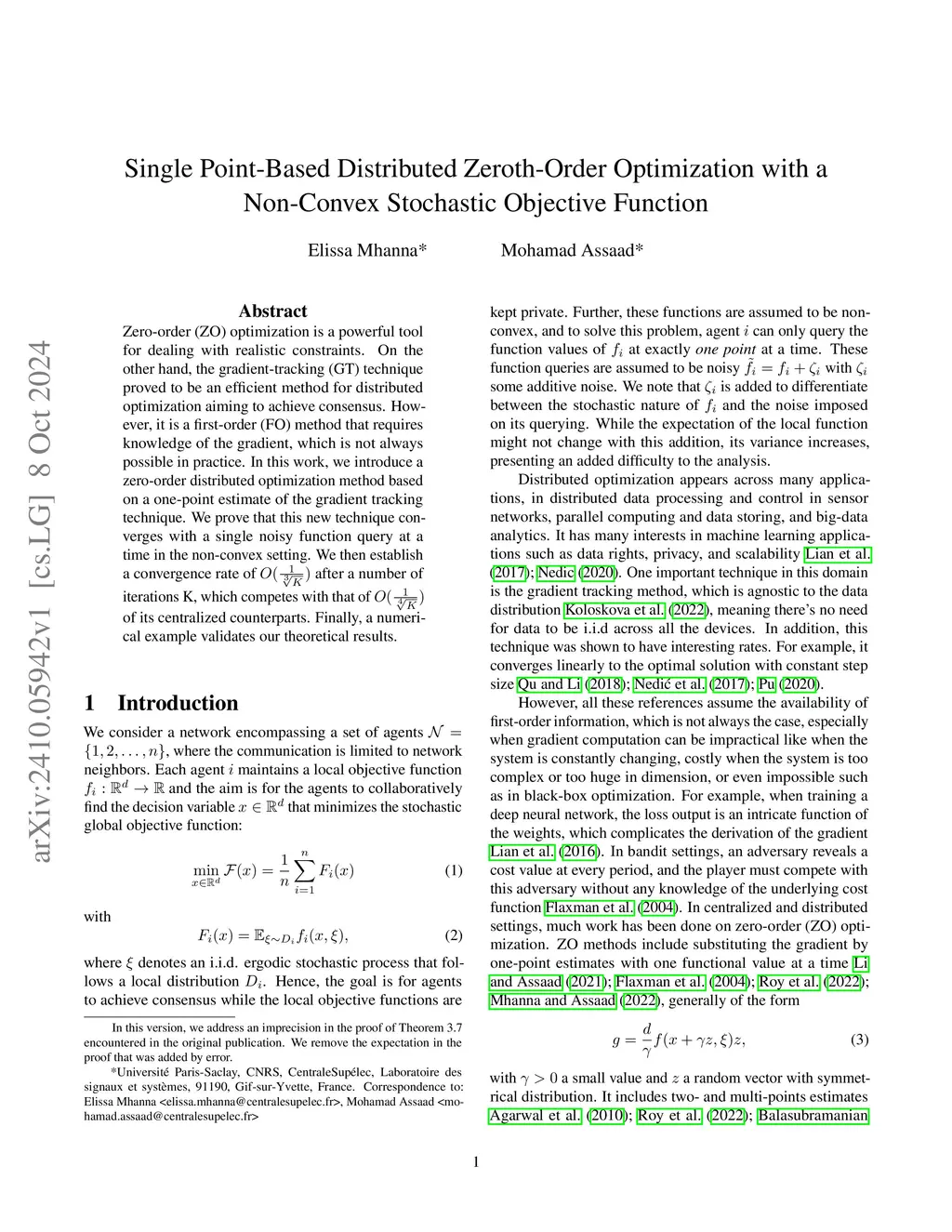 Zero-order (ZO) optimization is a powerful tool for dealing with realistic constraints. On the other hand, the gradient-tracking (GT) technique proved to be an efficient method for distributed optimization aiming to achieve consensus. However, it is a first-order (FO) method that requires knowledge of the gradient, which is not always possible in practice. In this work, we introduce a zero-order distributed optimization method based on a one-point estimate of the gradient tracking technique. We prove that this new technique converges with a single noisy function query at a time in the non-convex setting. We then establish a convergence rate of after a number of iterations K, which competes with that of of its centralized counterparts. Finally, a numerical example validates our theoretical results.