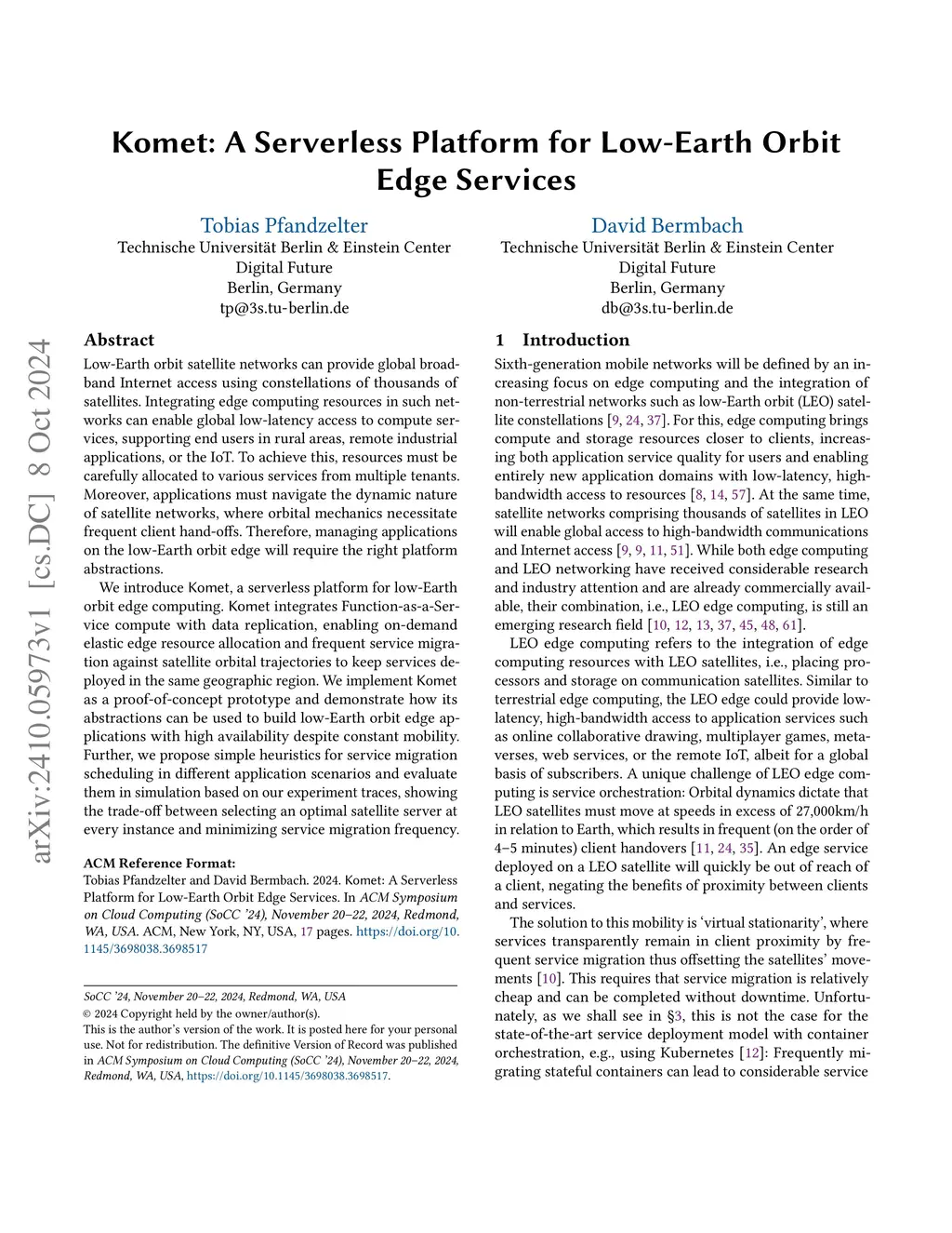 Komet: A Serverless Platform for Low-Earth Orbit Edge Services