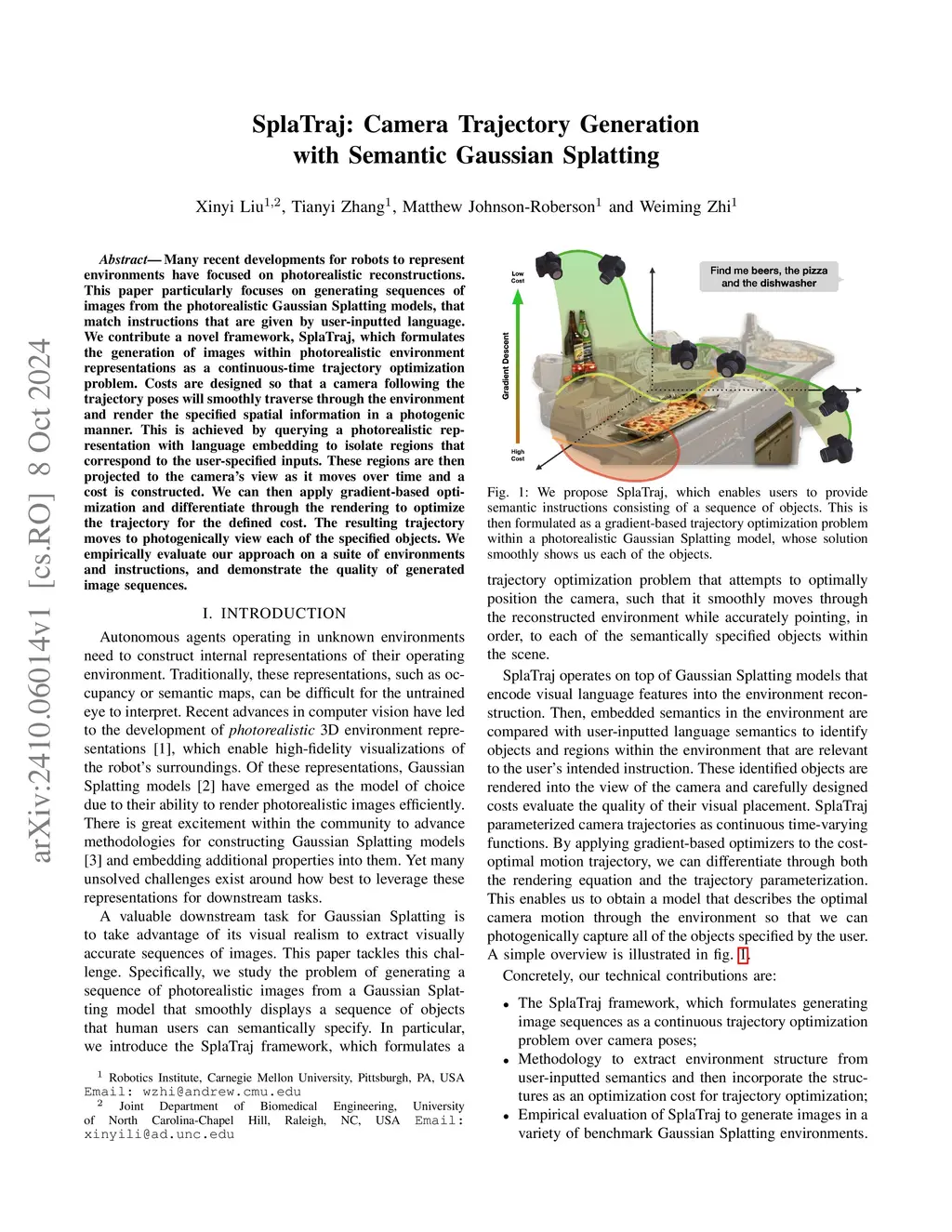 SplaTraj: Camera Trajectory Generation with Semantic Gaussian Splatting