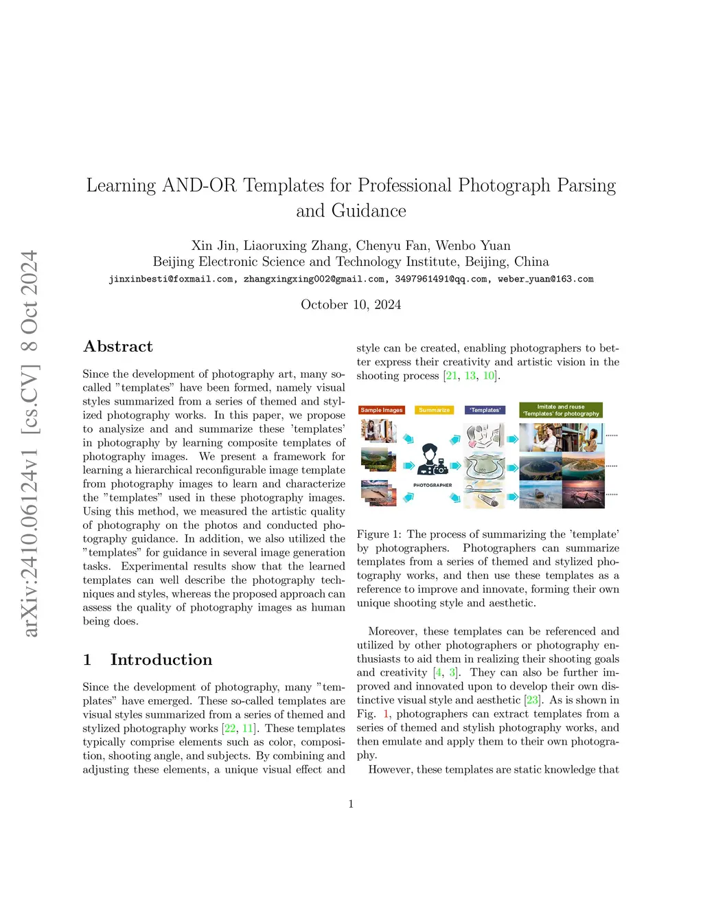 Since the development of photography art, many so-called "templates" have been formed, namely visual styles summarized from a series of themed and stylized photography works. In this paper, we propose to analysize and and summarize these 'templates' in photography by learning composite templates of photography images. We present a framework for learning a hierarchical reconfigurable image template from photography images to learn and characterize the "templates" used in these photography images. Using this method, we measured the artistic quality of photography on the photos and conducted photography guidance. In addition, we also utilized the "templates" for guidance in several image generation tasks. Experimental results show that the learned templates can well describe the photography techniques and styles, whereas the proposed approach can assess the quality of photography images as human being does.