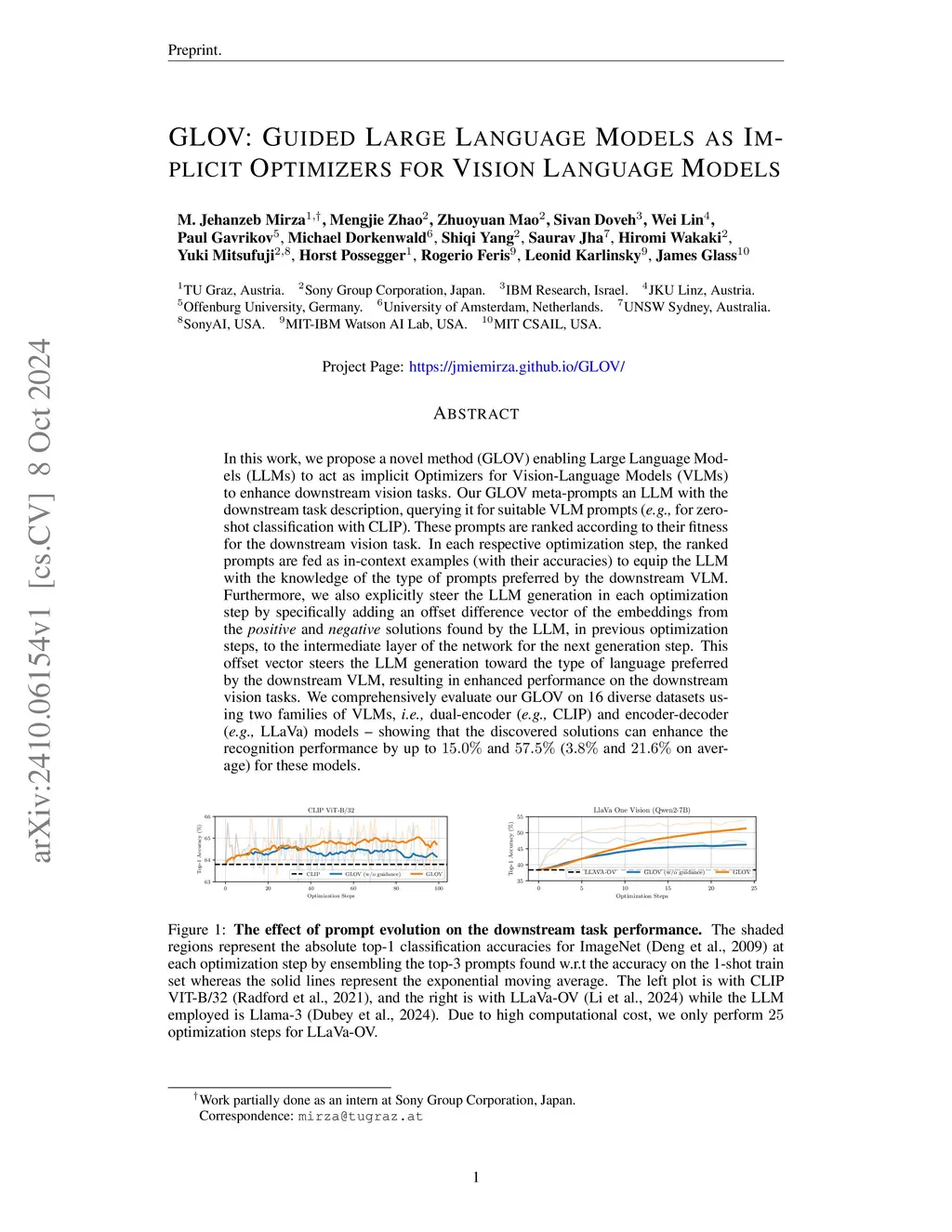GLOV: Guided Large Language Models as Implicit Optimizers for Vision Language Models