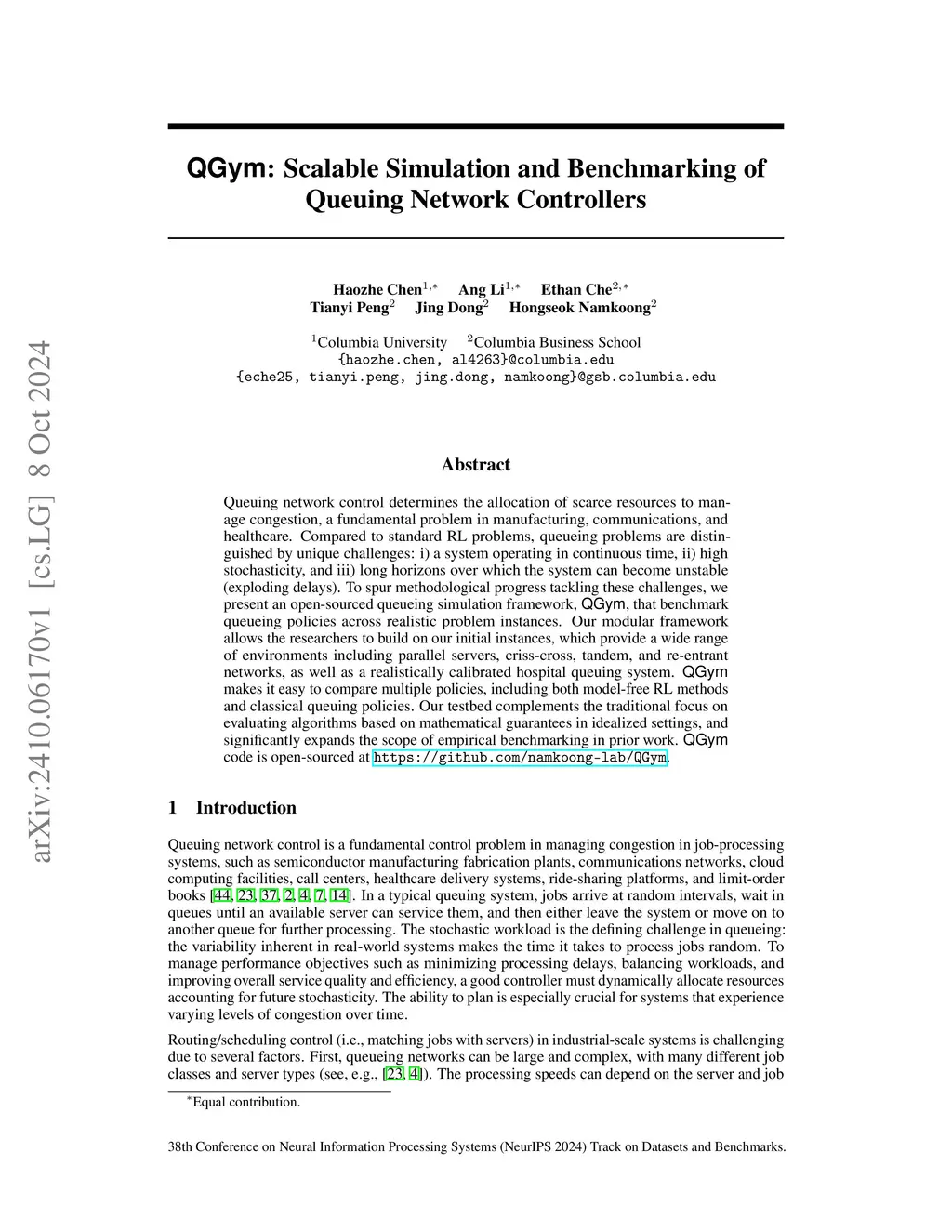 QGym: Scalable Simulation and Benchmarking of Queuing Network