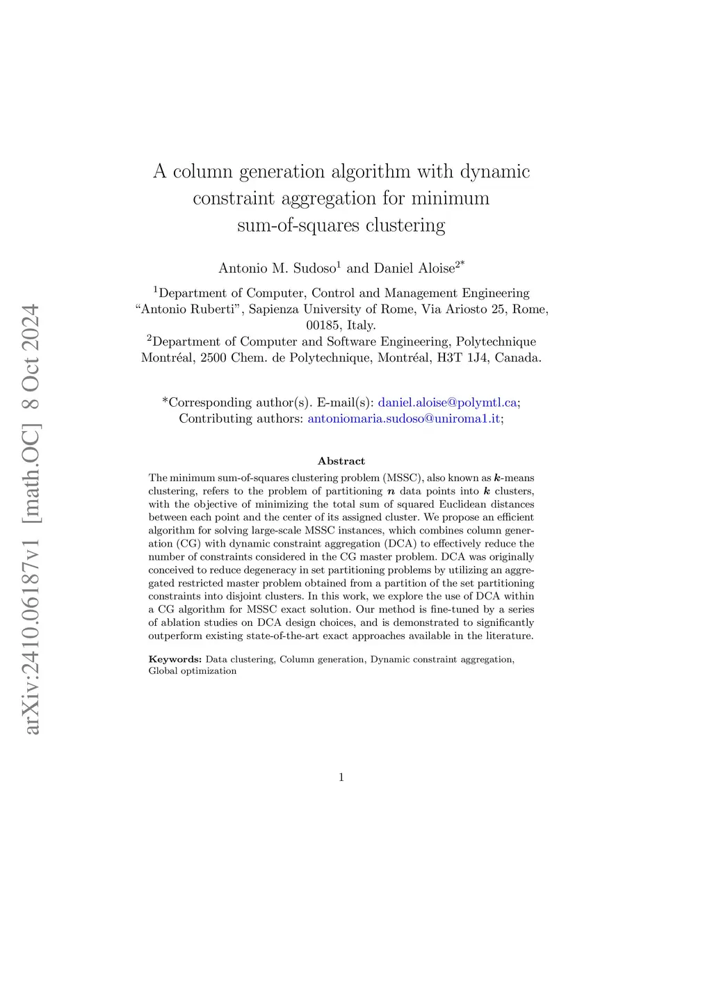 A column generation algorithm with dynamic constraint aggregation for minimum sum-of-squares clustering