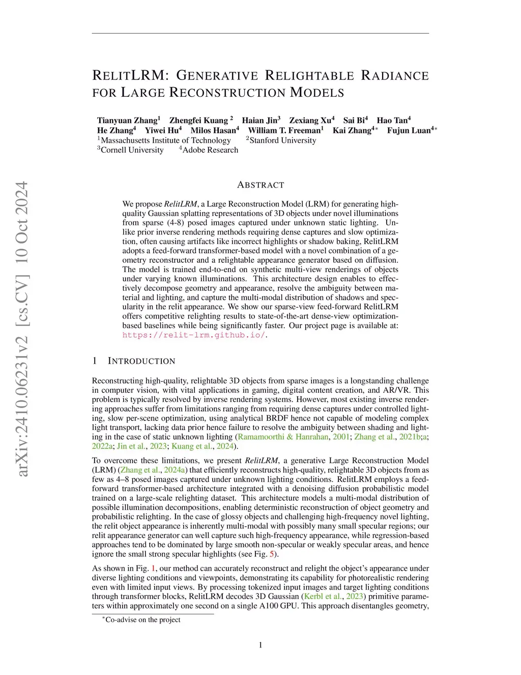 RelitLRM: Generative Relightable Radiance for Large Reconstruction