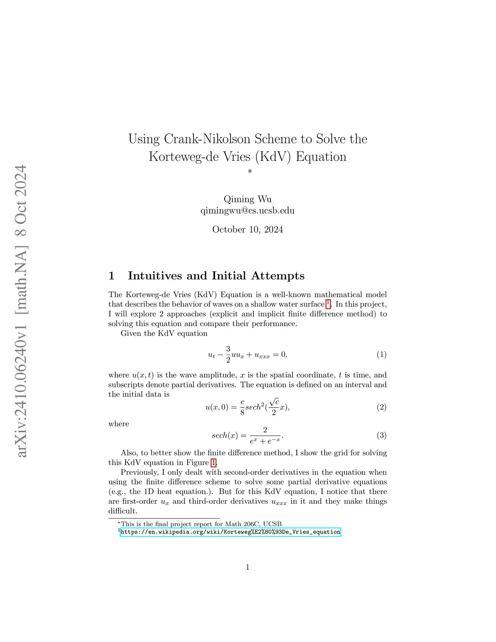 Using Crank-Nikolson Scheme to Solve the Korteweg-de Vries (KdV)