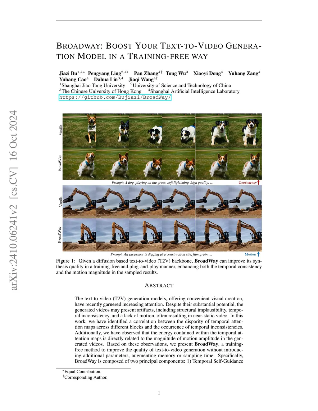 The text-to-video (T2V) generation models, offering convenient visual creation, have recently garnered increasing attention. Despite their substantial potential, the generated videos may present artifacts, including structural implausibility, temporal inconsistency, and a lack of motion, often resulting in near-static video. In this work, we have identified a correlation between the disparity of temporal attention maps across different blocks and the occurrence of temporal inconsistencies. Additionally, we have observed that the energy contained within the temporal attention maps is directly related to the magnitude of motion amplitude in the generated videos. Based on these observations, we present ByTheWay, a training-free method to improve the quality of text-to-video generation without introducing additional parameters, augmenting memory or sampling time. Specifically, ByTheWay is composed of two principal components: 1) Temporal Self-Guidance improves the structural plausibility and temporal consistency of generated videos by reducing the disparity between the temporal attention maps across various decoder blocks. 2) Fourier-based Motion Enhancement enhances the magnitude and richness of motion by amplifying the energy of the map. Extensive experiments demonstrate that ByTheWay significantly improves the quality of text-to-video generation with negligible additional cost.