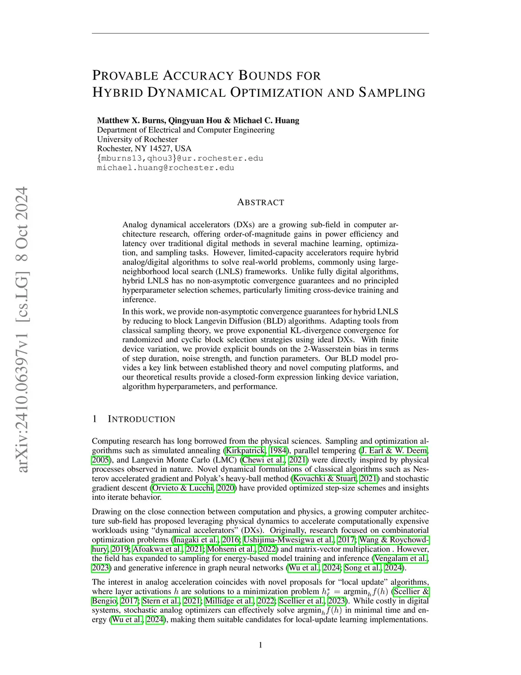 Provable Accuracy Bounds for Hybrid Dynamical Optimization and Sampling