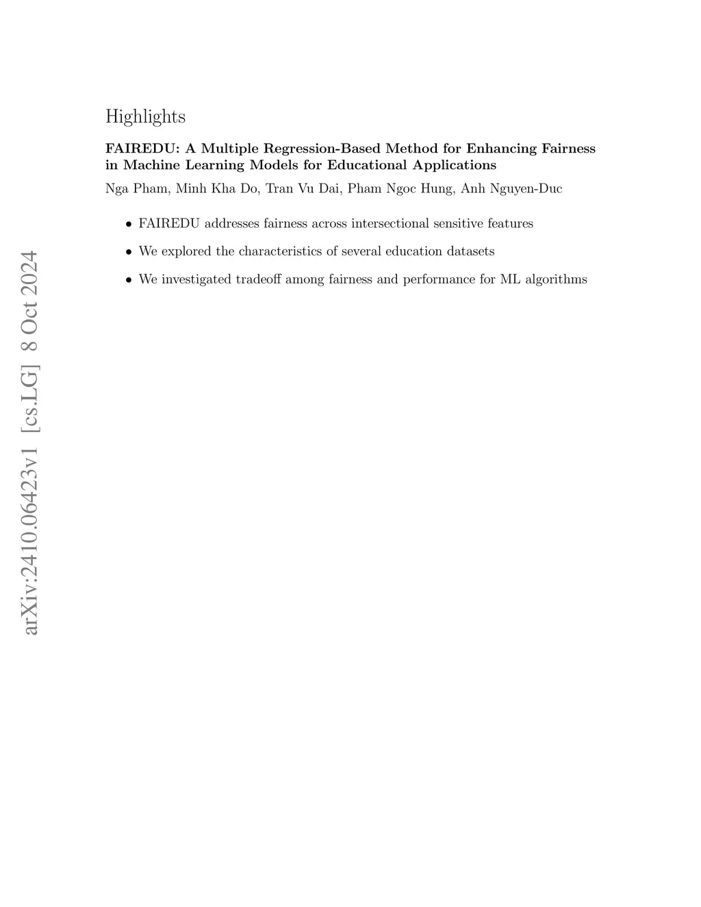 FAIREDU: A Multiple Regression-Based Method for Enhancing Fairness in