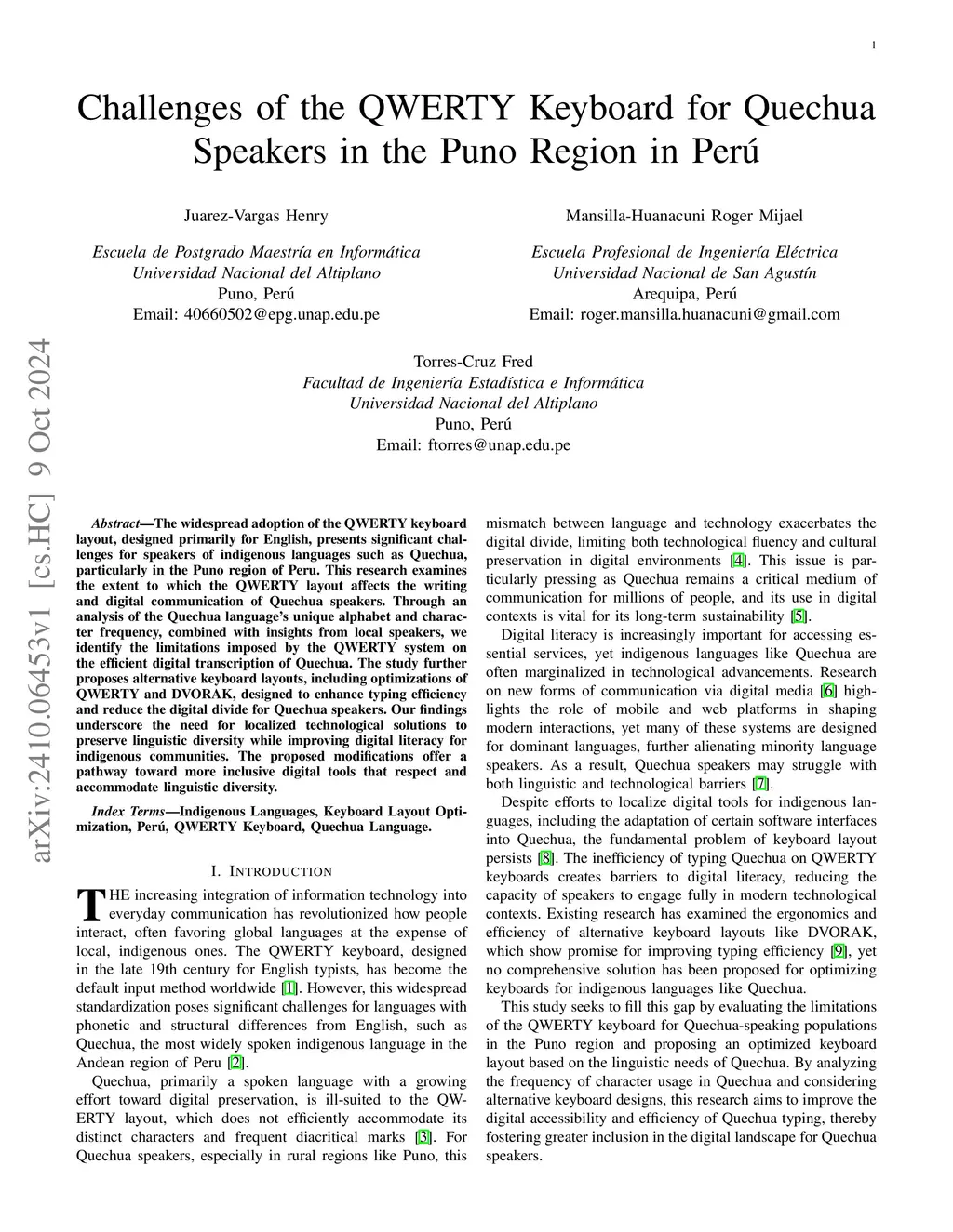 Challenges of the QWERTY Keyboard for Quechua Speakers in the Puno