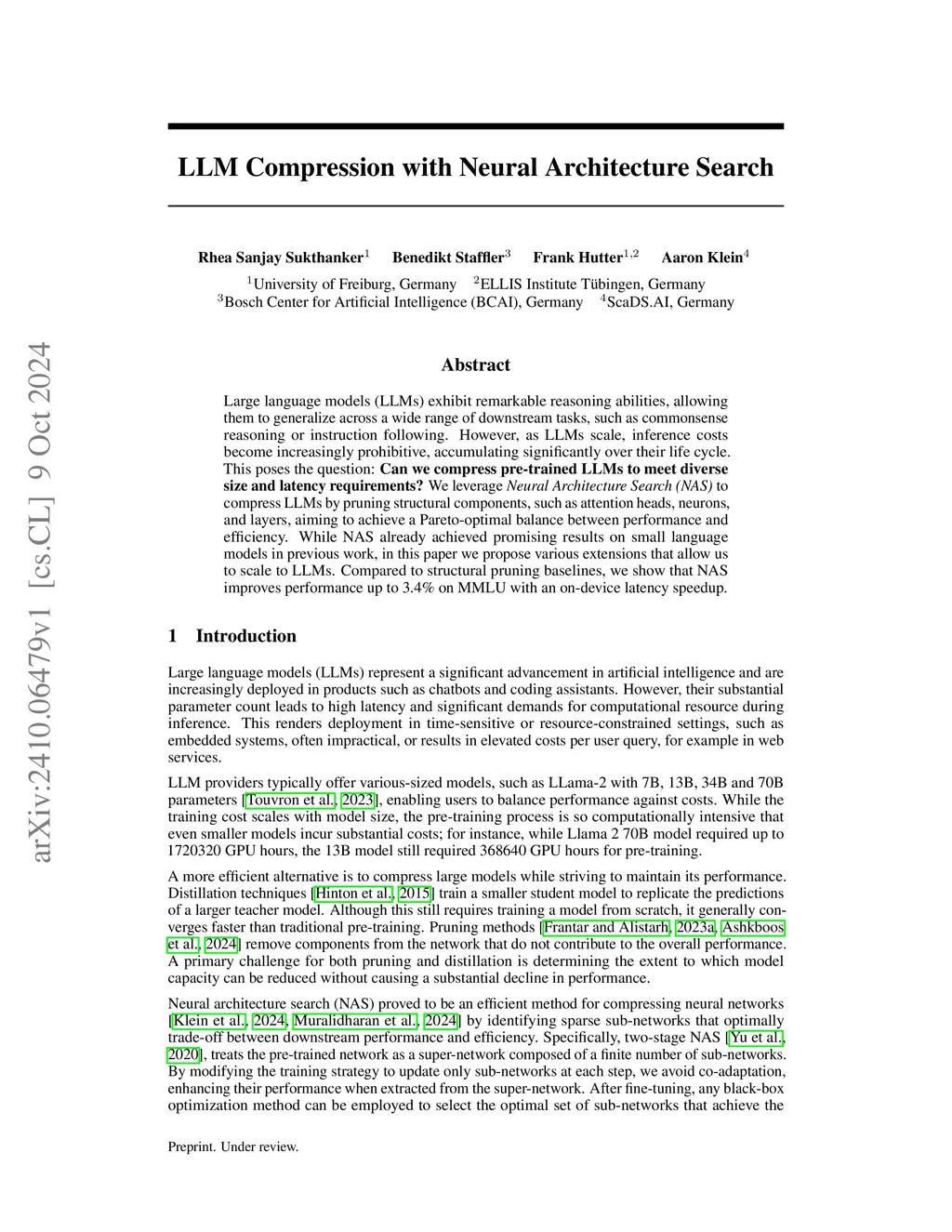 Large Language Models (LLMs) demonstrate exceptional reasoning abilities, enabling strong generalization across diverse tasks such as commonsense reasoning and instruction following. However, as LLMs scale, inference costs become increasingly prohibitive, accumulating significantly over their life cycle. In this paper we consider model compression for LLMs to reduce model size while improving downstream task performance. We phrase this as a neural architecture search problem that automatically prunes structural components, such as attention heads, neurons, and layers by searching for the Pareto-optimal set of sub-networks balancing between performance and on-device latency. Compared to state-of-the-art structural pruning approaches and fine-tuned smaller sub-networks extracted from the pre-trained model, our method achieves upto 9.85% improvement on average on 11 diverse downstream tasks, while achieving up to 22% improvement of on-device latency.