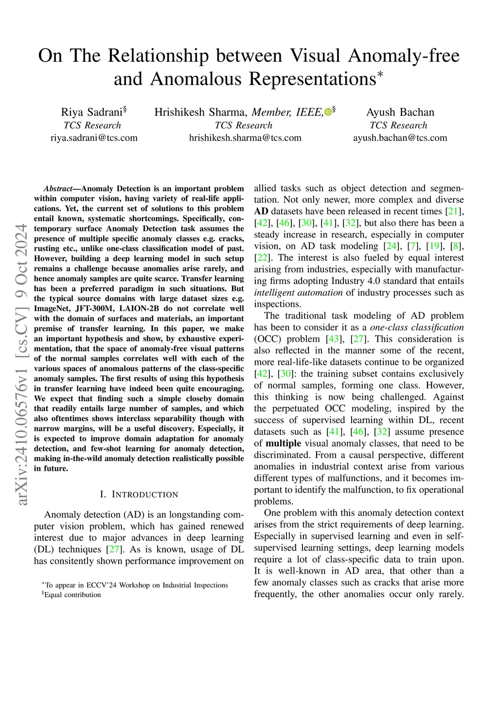 Anomaly Detection is an important problem within computer vision, having variety of real-life applications. Yet, the current set of solutions to this problem entail known, systematic shortcomings. Specifically, contemporary surface Anomaly Detection task assumes the presence of multiple specific anomaly classes e.g. cracks, rusting etc., unlike one-class classification model of past. However, building a deep learning model in such setup remains a challenge because anomalies arise rarely, and hence anomaly samples are quite scarce. Transfer learning has been a preferred paradigm in such situations. But the typical source domains with large dataset sizes e.g. ImageNet, JFT-300M, LAION-2B do not correlate well with the domain of surfaces and materials, an important premise of transfer learning. In this paper, we make an important hypothesis and show, by exhaustive experimentation, that the space of anomaly-free visual patterns of the normal samples correlates well with each of the various spaces of anomalous patterns of the class-specific anomaly samples. The first results of using this hypothesis in transfer learning have indeed been quite encouraging. We expect that finding such a simple closeby domain that readily entails large number of samples, and which also oftentimes shows interclass separability though with narrow margins, will be a useful discovery. Especially, it is expected to improve domain adaptation for anomaly detection, and few-shot learning for anomaly detection, making in-the-wild anomaly detection realistically possible in future.