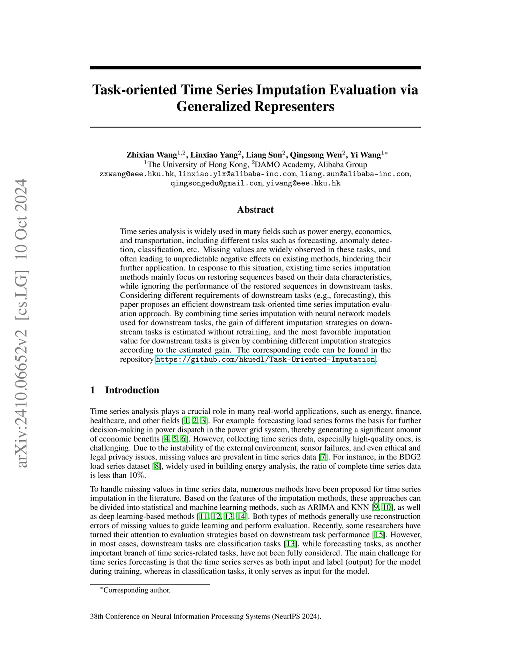 Time series analysis is widely used in many fields such as power energy, economics, and transportation, including different tasks such as forecasting, anomaly detection, classification, etc. Missing values are widely observed in these tasks, and often leading to unpredictable negative effects on existing methods, hindering their further application. In response to this situation, existing time series imputation methods mainly focus on restoring sequences based on their data characteristics, while ignoring the performance of the restored sequences in downstream tasks. Considering different requirements of downstream tasks (e.g., forecasting), this paper proposes an efficient downstream task-oriented time series imputation evaluation approach. By combining time series imputation with neural network models used for downstream tasks, the gain of different imputation strategies on downstream tasks is estimated without retraining, and the most favorable imputation value for downstream tasks is given by combining different imputation strategies according to the estimated gain.