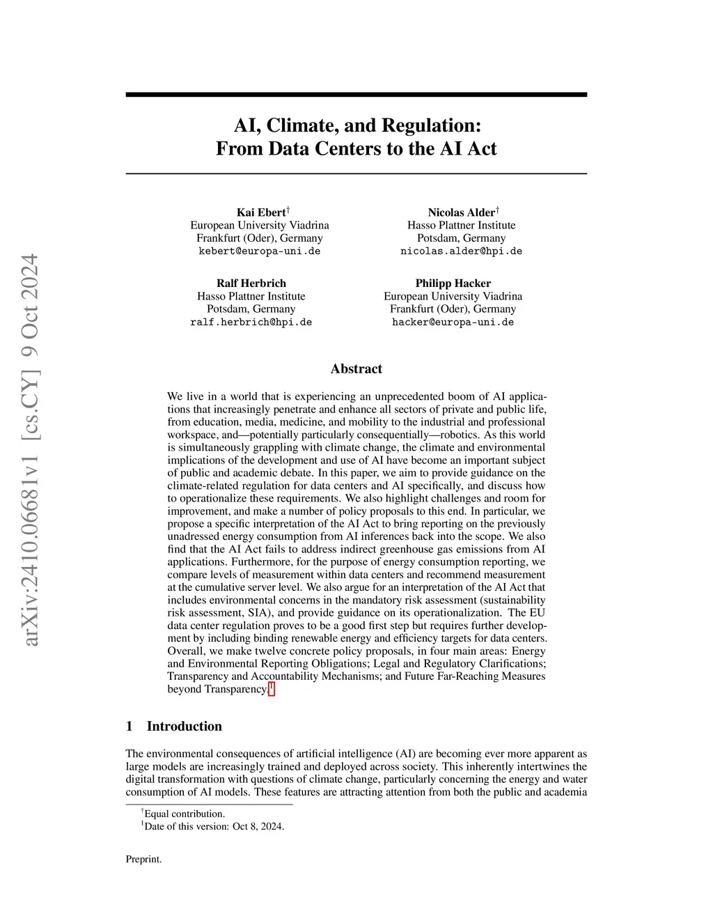 AI, Climate, and Regulation: From Data Centers to the AI Act