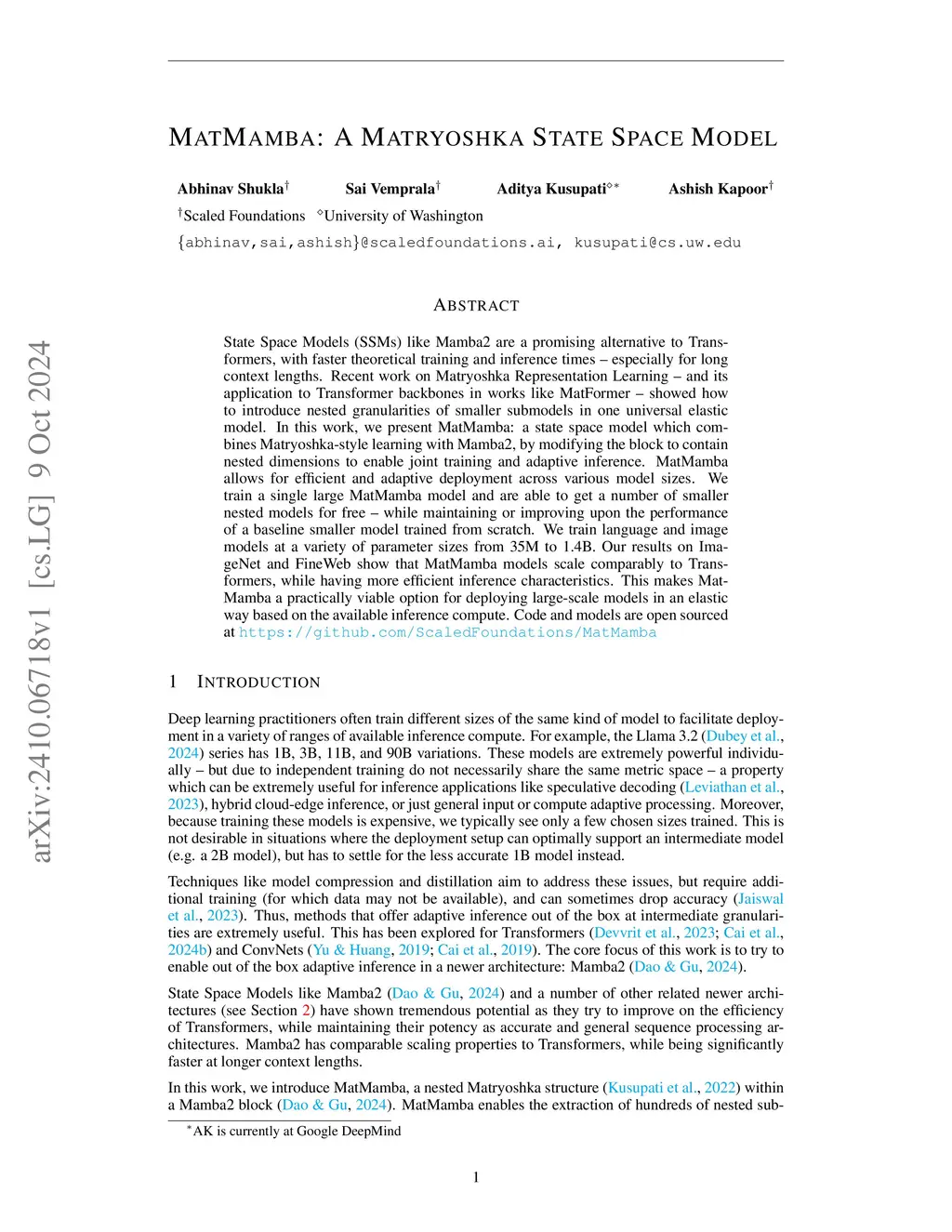 MatMamba: A Matryoshka State Space Model