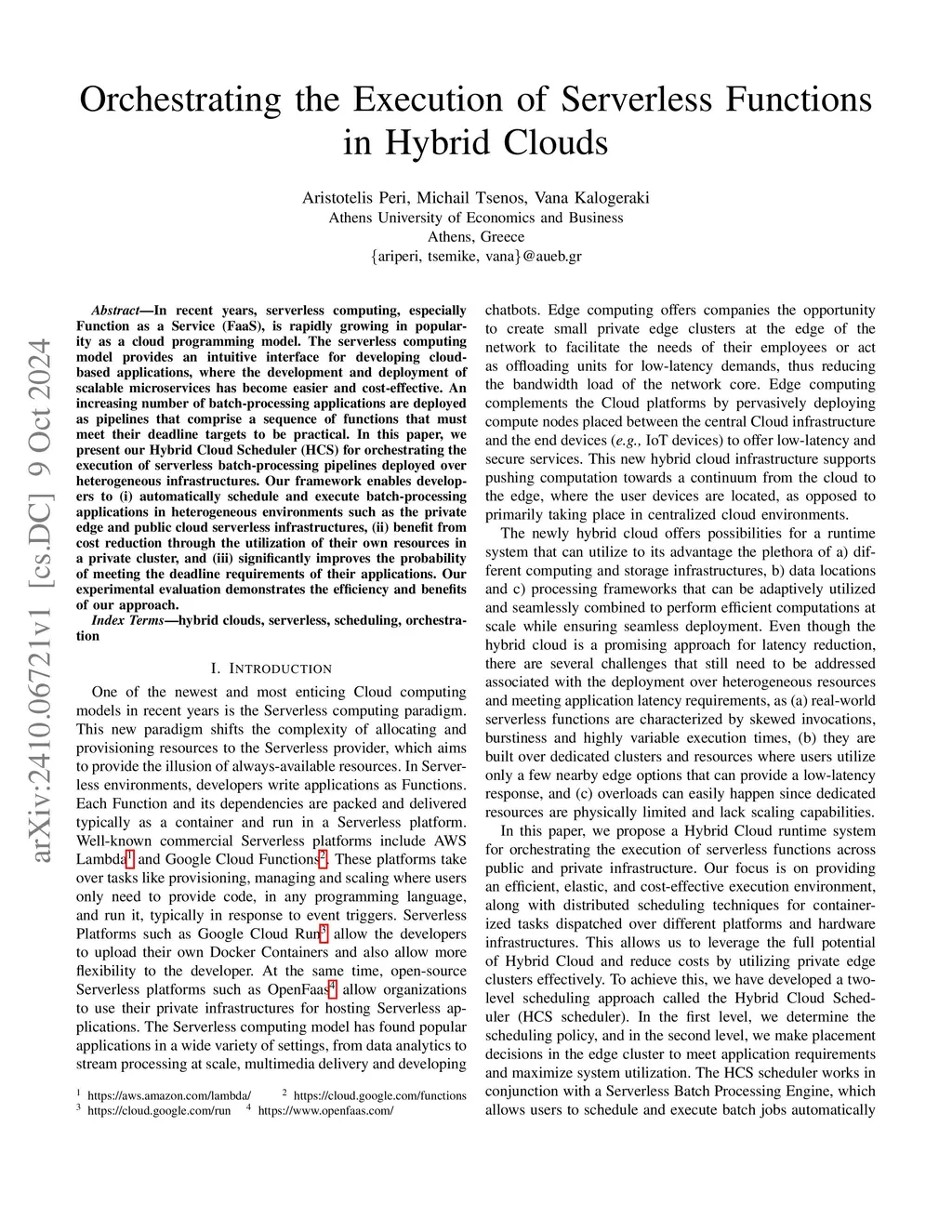 Orchestrating the Execution of Serverless Functions in Hybrid Clouds