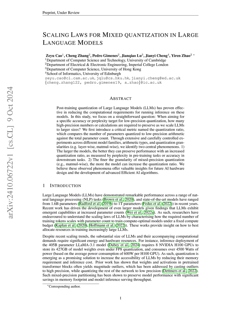 Scaling Laws For Mixed Quantization