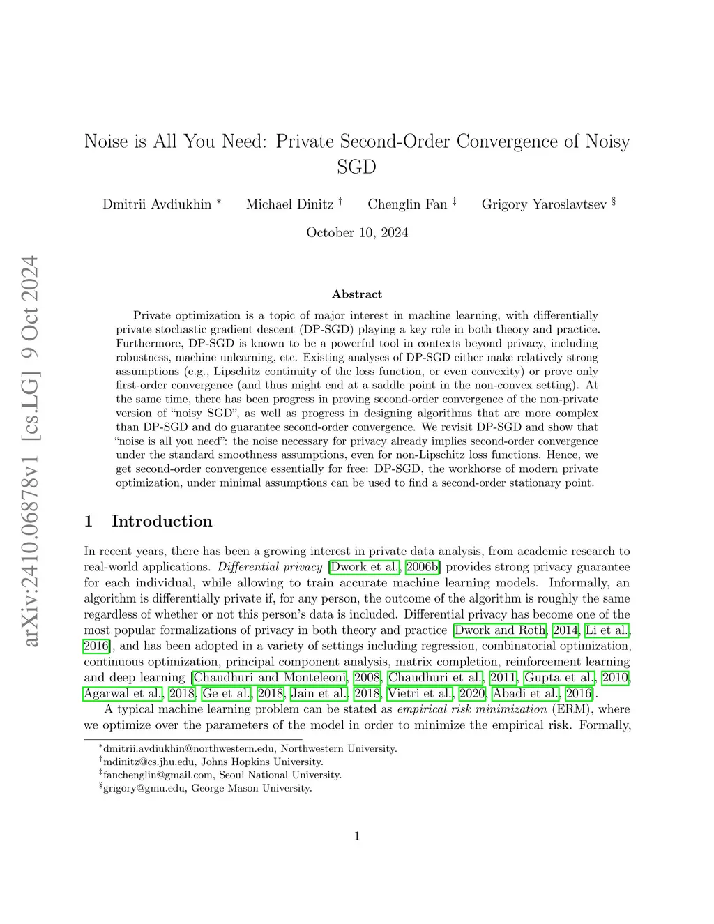 Noise is All You Need: Private Second-Order Convergence of Noisy SGD