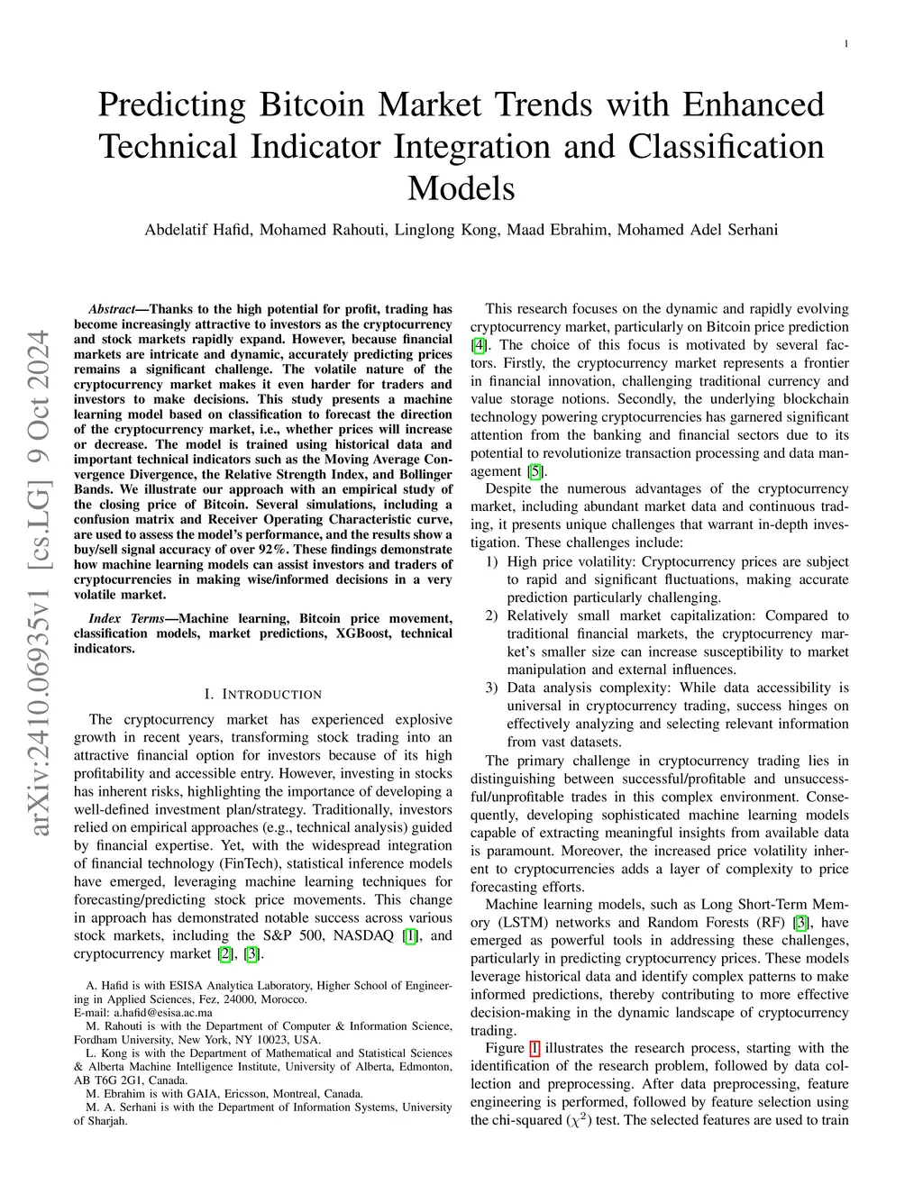 Thanks to the high potential for profit, trading has become increasingly attractive to investors as the cryptocurrency and stock markets rapidly expand. However, because financial markets are intricate and dynamic, accurately predicting prices remains a significant challenge. The volatile nature of the cryptocurrency market makes it even harder for traders and investors to make decisions. This study presents a classification-based machine learning model to forecast the direction of the cryptocurrency market, i.e., whether prices will increase or decrease. The model is trained using historical data and important technical indicators such as the Moving Average Convergence Divergence, the Relative Strength Index, and the Bollinger Bands. We illustrate our approach with an empirical study of the closing price of Bitcoin. Several simulations, including a confusion matrix and Receiver Operating Characteristic curve, are used to assess the model's performance, and the results show a buy/sell signal accuracy of over 92\%. These findings demonstrate how machine learning models can assist investors and traders of cryptocurrencies in making wise/informed decisions in a very volatile market.
