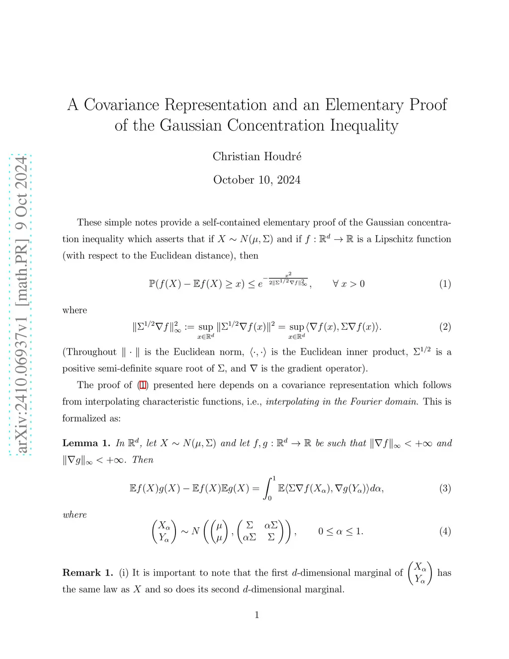 Via a covariance representation based on characteristic functions, a known elementary proof of the Gaussian concentration inequality is presented. A few other applications are briefly mentioned.