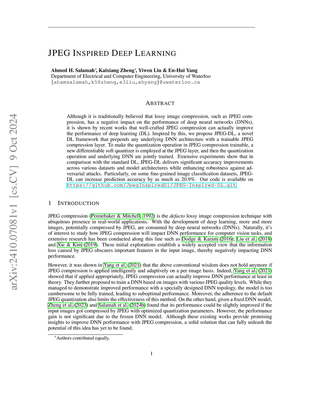 JPEG Inspired Deep Learning