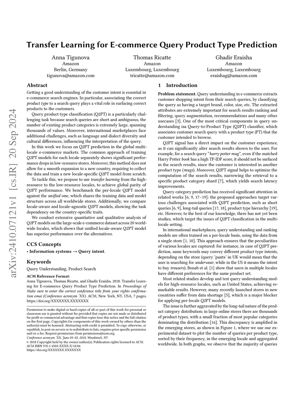Getting a good understanding of the customer intent is essential in e-commerce search engines. In particular, associating the correct product type to a search query plays a vital role in surfacing correct products to the customers. Query product type classification (Q2PT) is a particularly challenging task because search queries are short and ambiguous, the number of existing product categories is extremely large, spanning thousands of values. Moreover, international marketplaces face additional challenges, such as language and dialect diversity and cultural differences, influencing the interpretation of the query. In this work we focus on Q2PT prediction in the global multilocale e-commerce markets. The common approach of training Q2PT models for each locale separately shows significant performance drops in low-resource stores. Moreover, this method does not allow for a smooth expansion to a new country, requiring to collect the data and train a new locale-specific Q2PT model from scratch. To tackle this, we propose to use transfer learning from the highresource to the low-resource locales, to achieve global parity of Q2PT performance. We benchmark the per-locale Q2PT model against the unified one, which shares the training data and model structure across all worldwide stores. Additionally, we compare locale-aware and locale-agnostic Q2PT models, showing the task dependency on the country-specific traits. We conduct extensive quantiative and qualitative analysis of Q2PT models on the large-scale e-commerce dataset across 20 worldwide locales, which shows that unified locale-aware Q2PT model has superior performance over the alternatives.