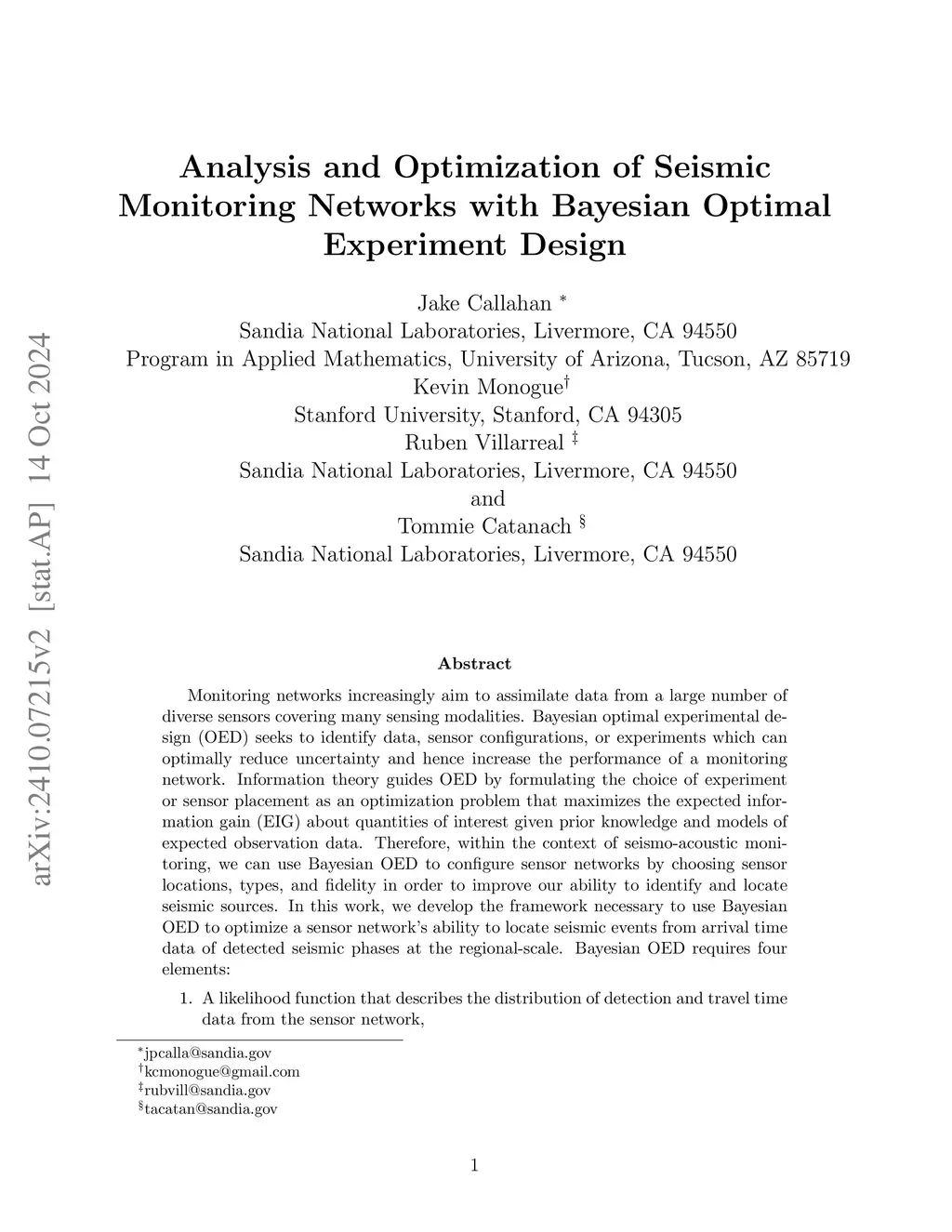 Analysis and Optimization of Seismic Monitoring Networks with Bayesian