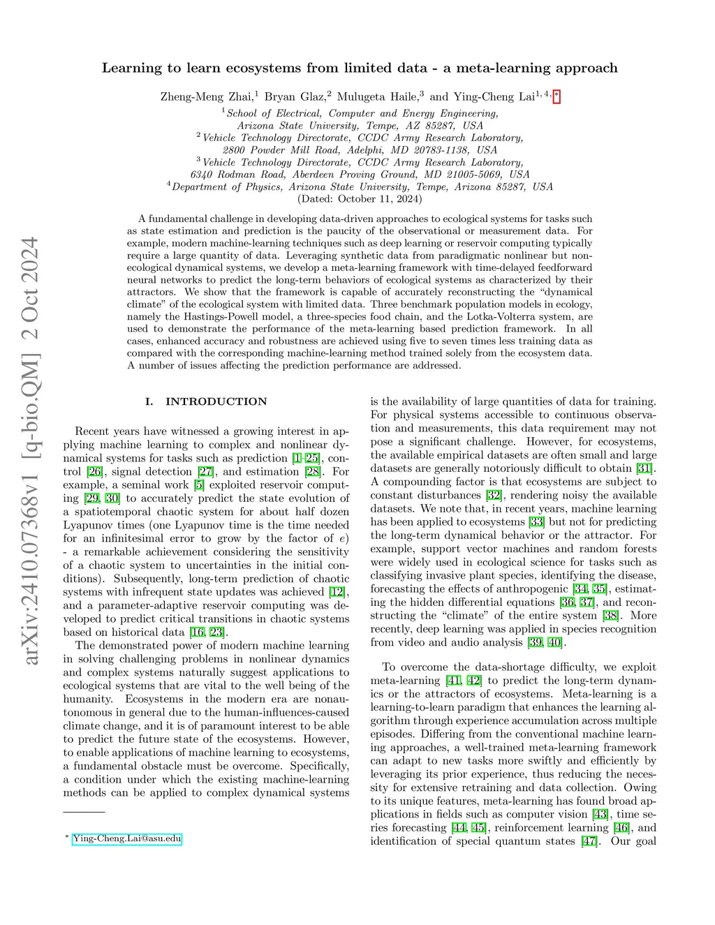 Learning to learn ecosystems from limited data -- a meta-learning