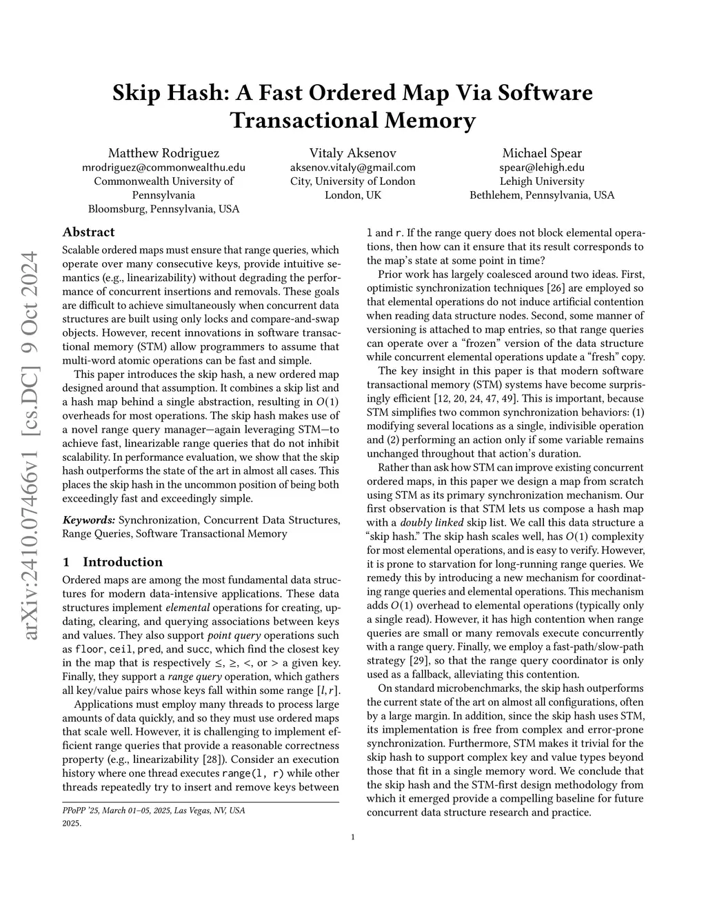 Skip Hash: A Fast Ordered Map Via Software Transactional Memory