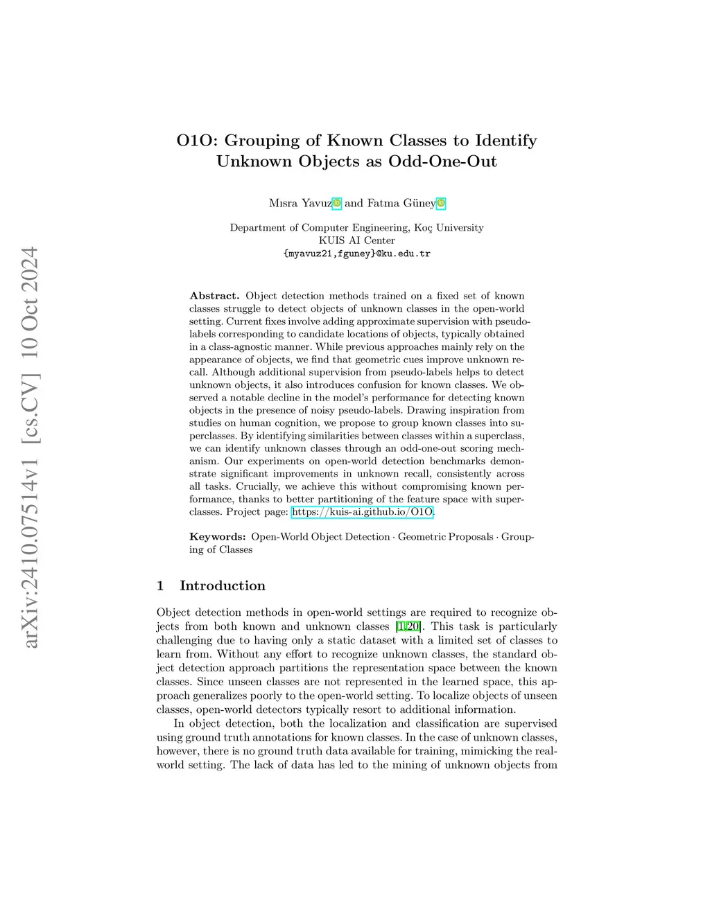 Object detection methods trained on a fixed set of known classes struggle to detect objects of unknown classes in the open-world setting. Current fixes involve adding approximate supervision with pseudo-labels corresponding to candidate locations of objects, typically obtained in a class-agnostic manner. While previous approaches mainly rely on the appearance of objects, we find that geometric cues improve unknown recall. Although additional supervision from pseudo-labels helps to detect unknown objects, it also introduces confusion for known classes. We observed a notable decline in the model's performance for detecting known objects in the presence of noisy pseudo-labels. Drawing inspiration from studies on human cognition, we propose to group known classes into superclasses. By identifying similarities between classes within a superclass, we can identify unknown classes through an odd-one-out scoring mechanism. Our experiments on open-world detection benchmarks demonstrate significant improvements in unknown recall, consistently across all tasks. Crucially, we achieve this without compromising known performance, thanks to better partitioning of the feature space with superclasses.