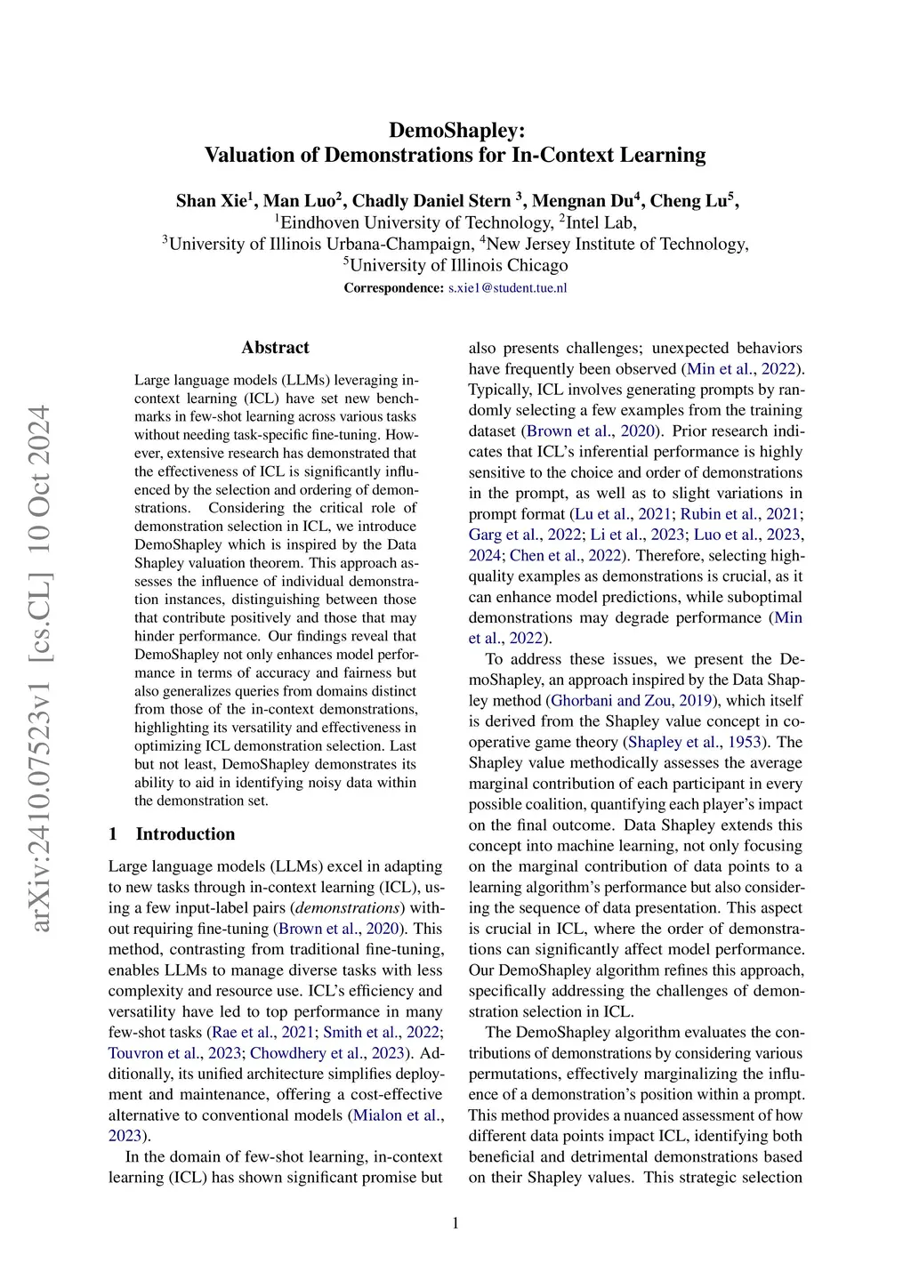 Large language models (LLMs) using in-context learning (ICL) excel in many tasks without task-specific fine-tuning. However, demonstration selection and ordering greatly impact ICL effectiveness. Focus on this issue, we propose DemoShapley, a Shapley-value based method that evaluates each demonstration's contribution by measuring its marginal effect across different prompt permutations. To further account for ICL's limited context windows and frequent low-shot settings, we introduce Beta-DemoShapley, a weighted extension that emphasizes the influence of smaller prompt sizes. Experiments on multiple benchmarks show that DemoShapley consistently outperforms existing influence-based selection strategies, while Beta-DemoShapley further improves performance in low-shot scenarios. Both methods also detect mislabeled data, enhance generalization to out-of-distribution tasks, and reduce demographic bias. Together, they provide a unified and robust framework for demonstration valuation in ICL.
