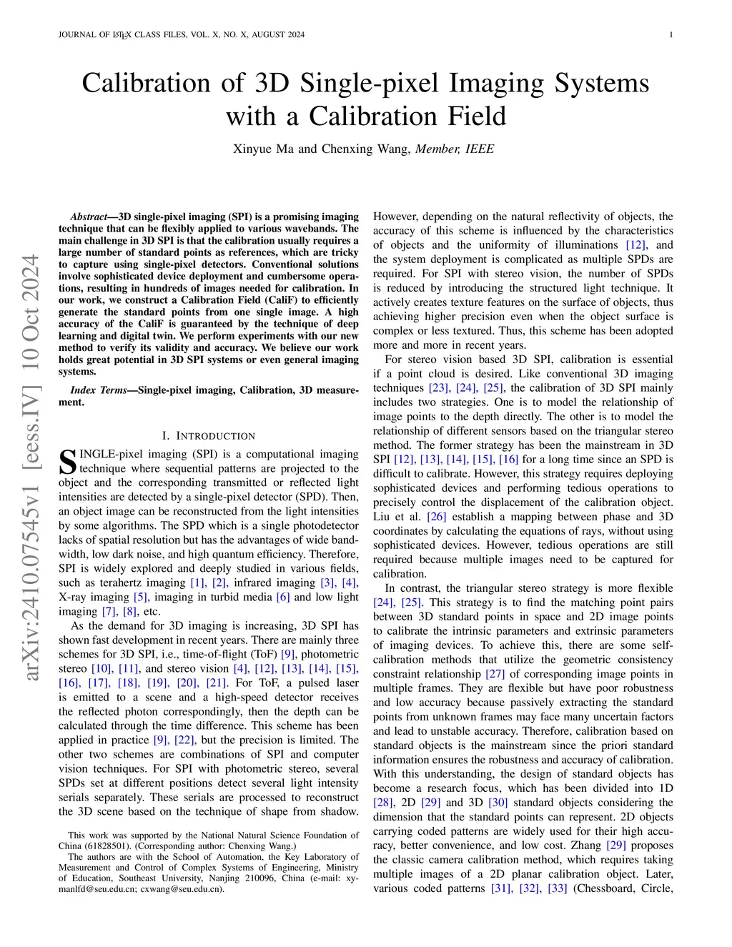 3D single-pixel imaging (SPI) is a promising imaging technique that can be ffexibly applied to various wavebands. The main challenge in 3D SPI is that the calibration usually requires a large number of standard points as references, which are tricky to capture using single-pixel detectors. Conventional solutions involve sophisticated device deployment and cumbersome operations, resulting in hundreds of images needed for calibration. In our work, we construct a Calibration Field (CaliF) to efffciently generate the standard points from one single image. A high accuracy of the CaliF is guaranteed by the technique of deep learning and digital twin. We perform experiments with our new method to verify its validity and accuracy. We believe our work holds great potential in 3D SPI systems or even general imaging systems.