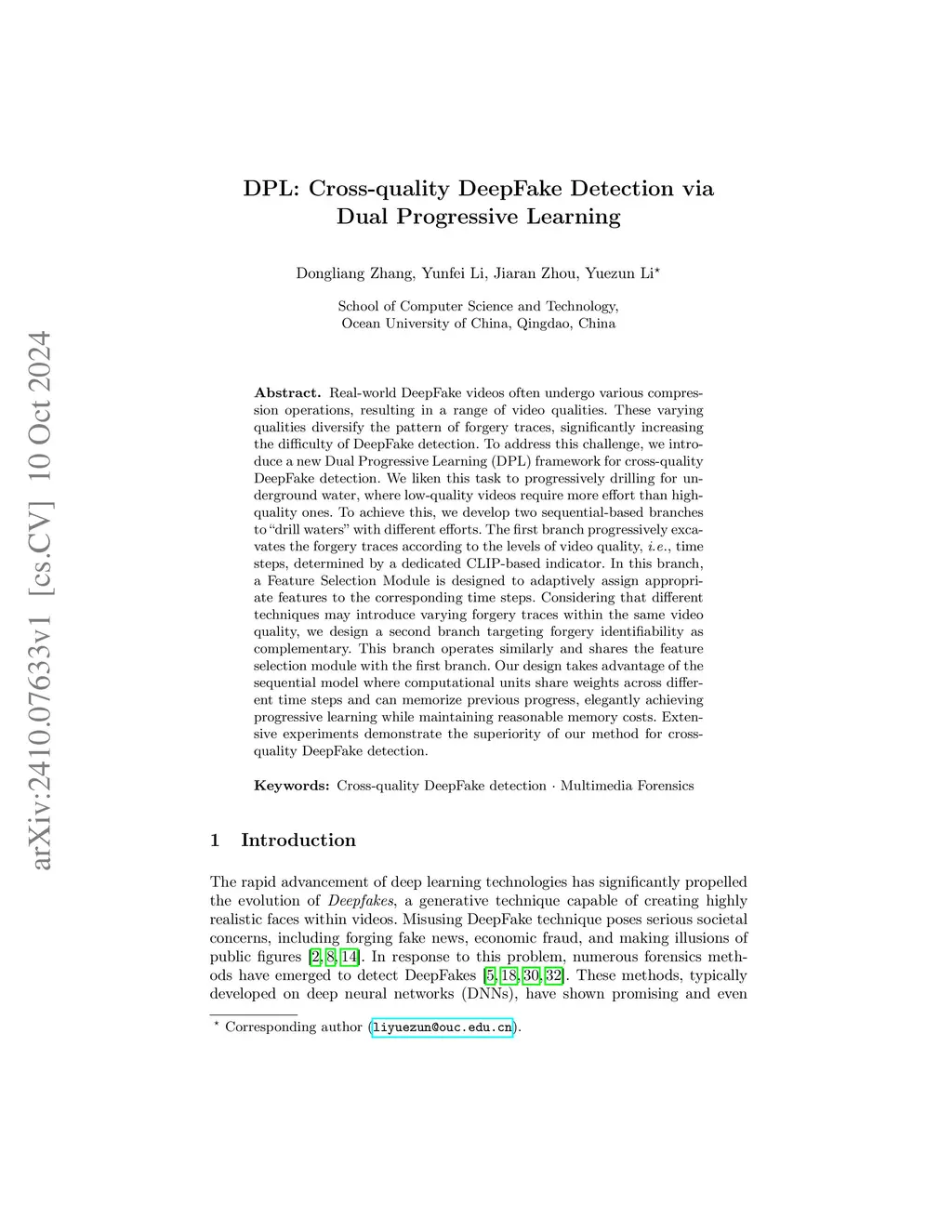 DPL: Cross-quality DeepFake Detection via Dual Progressive Learning
