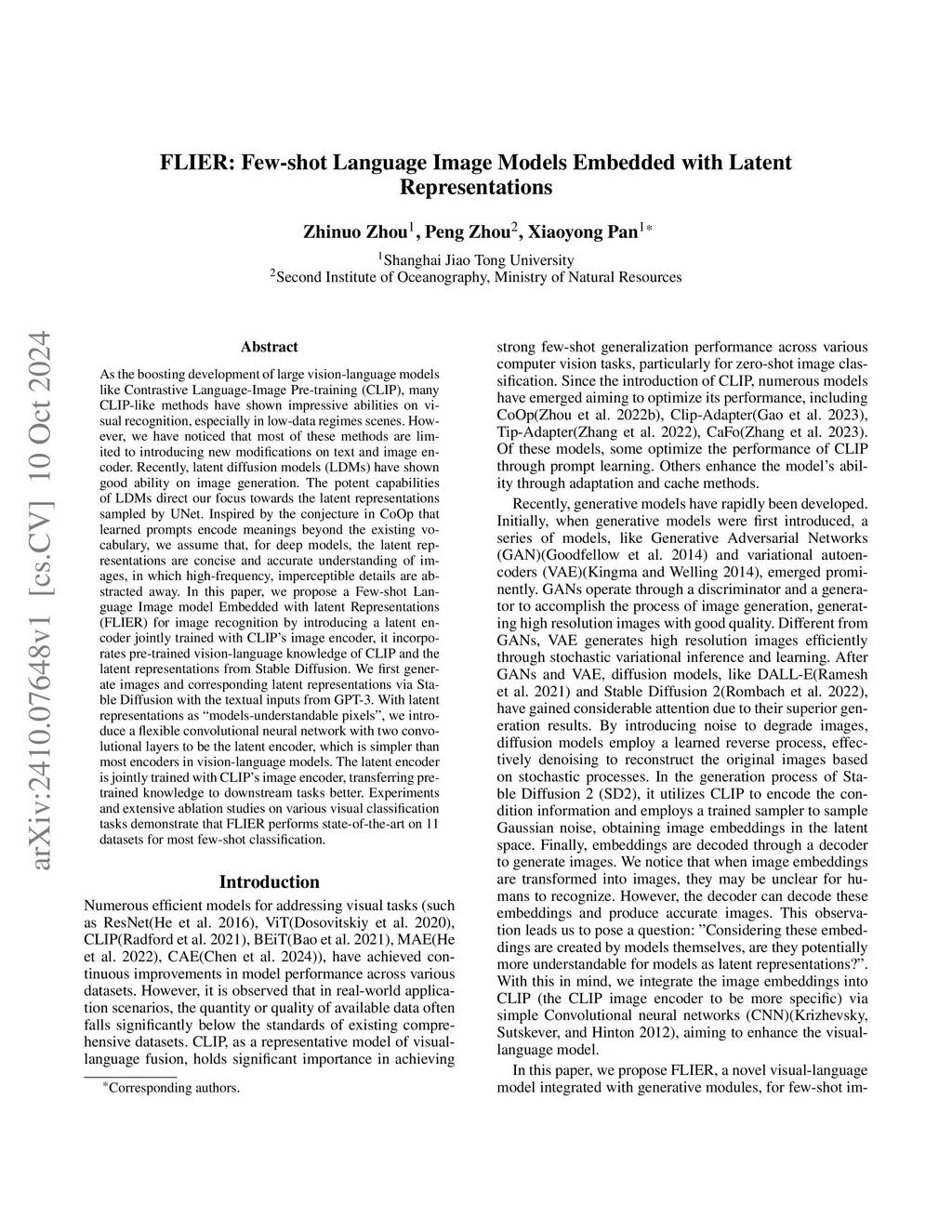 FLIER: Few-shot Language Image Models Embedded with Latent