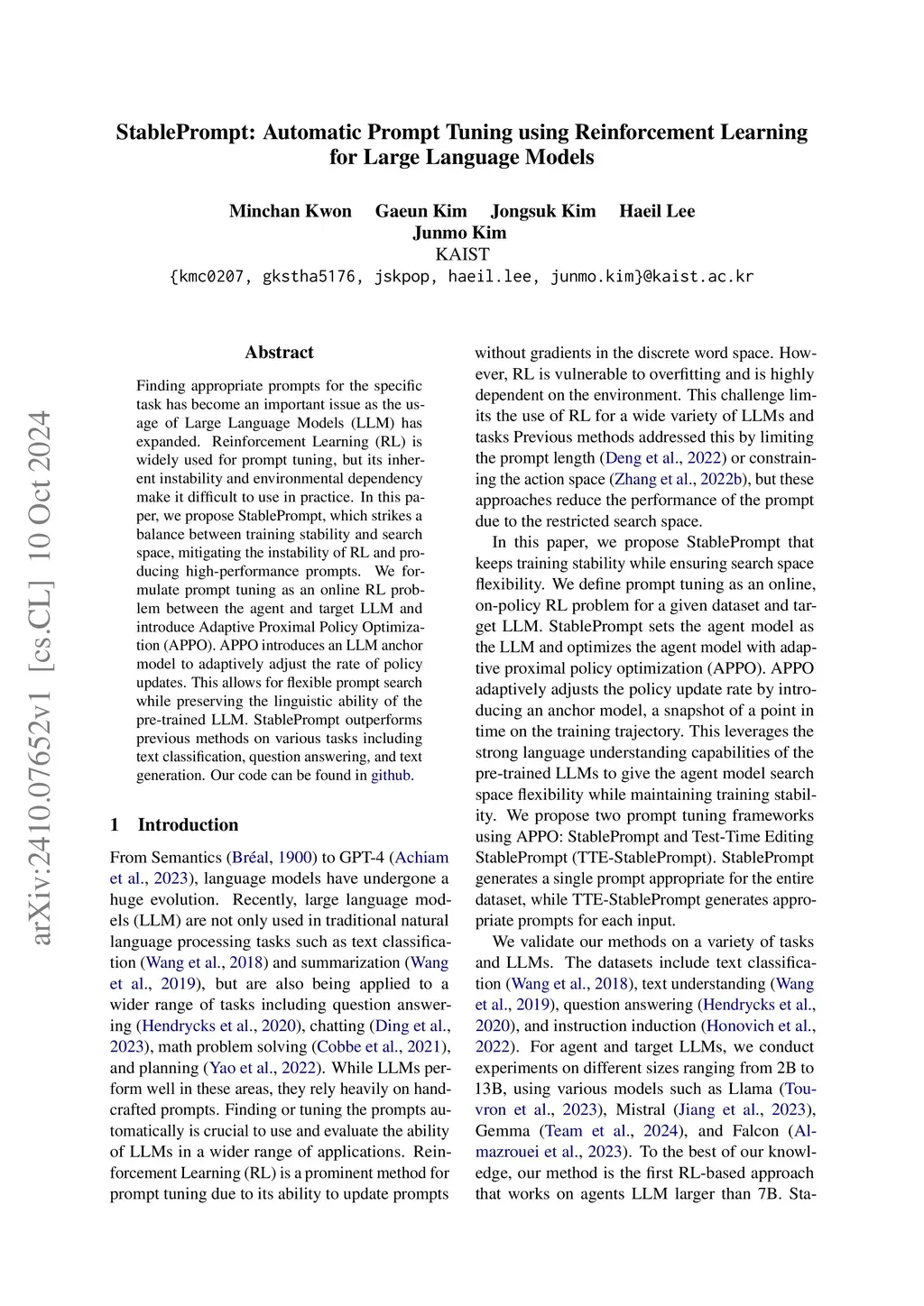 StablePrompt: Automatic Prompt Tuning using Reinforcement Learning for