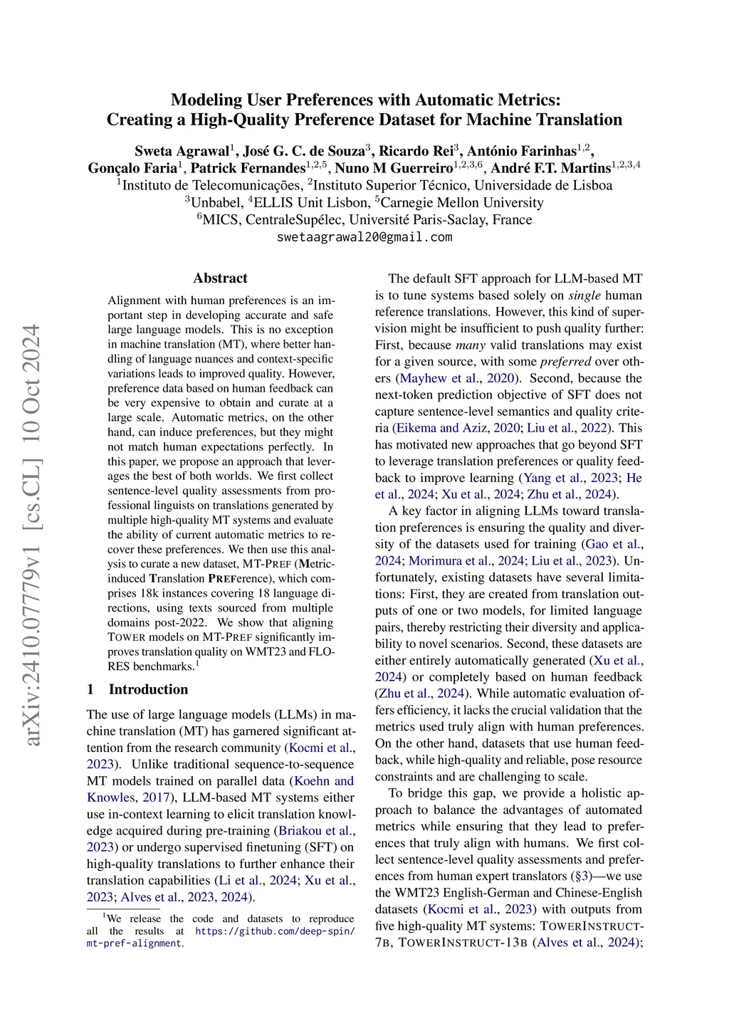 Alignment with human preferences is an important step in developing accurate and safe large language models. This is no exception in machine translation (MT), where better handling of language nuances and context-specific variations leads to improved quality. However, preference data based on human feedback can be very expensive to obtain and curate at a large scale. Automatic metrics, on the other hand, can induce preferences, but they might not match human expectations perfectly. In this paper, we propose an approach that leverages the best of both worlds. We first collect sentence-level quality assessments from professional linguists on translations generated by multiple high-quality MT systems and evaluate the ability of current automatic metrics to recover these preferences. We then use this analysis to curate a new dataset, MT-Pref (metric induced translation preference) dataset, which comprises 18k instances covering 18 language directions, using texts sourced from multiple domains post-2022. We show that aligning TOWER models on MT-Pref significantly improves translation quality on WMT23 and FLORES benchmarks.