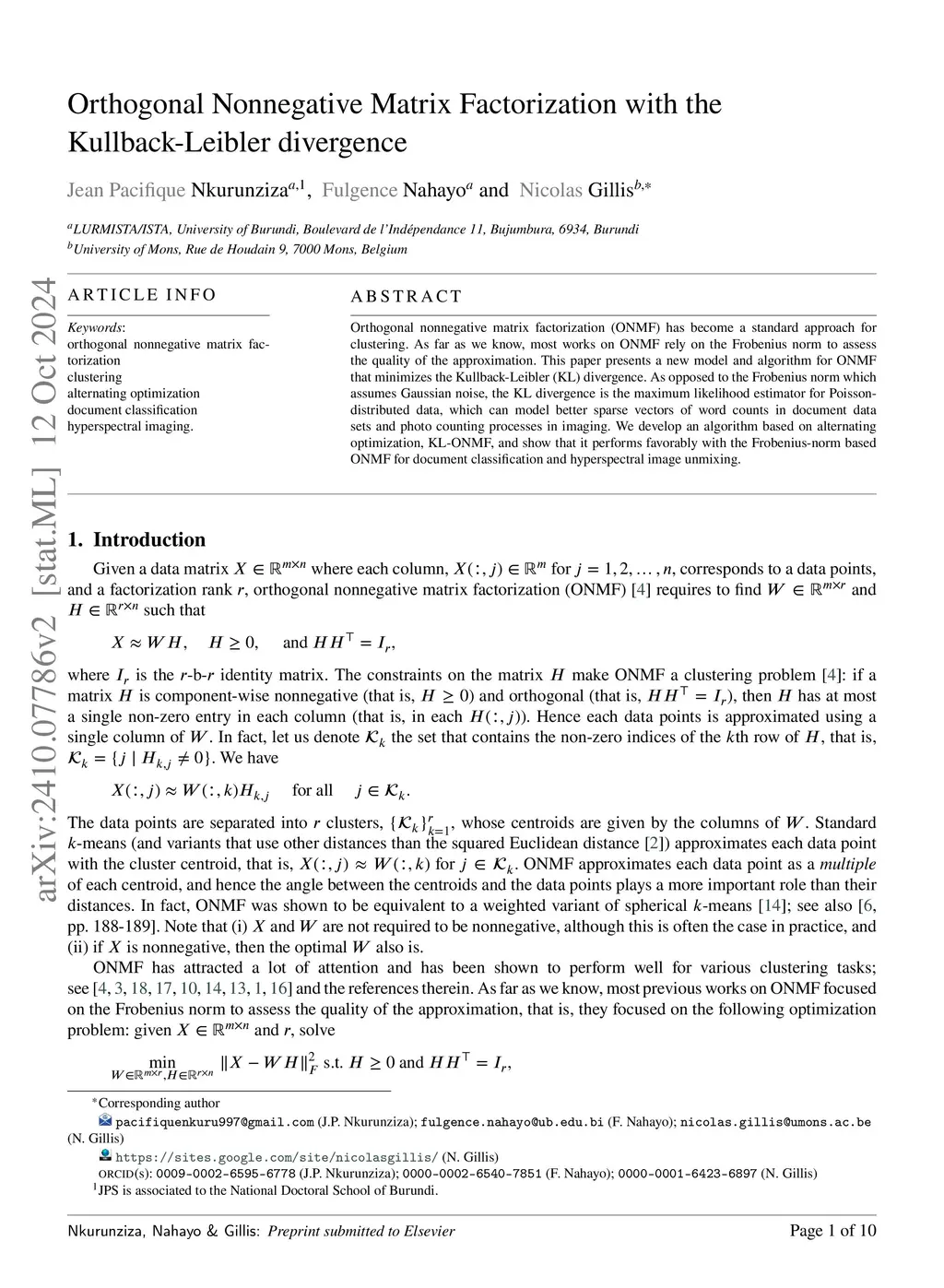 Orthogonal Nonnegative Matrix Factorization with the Kullback-Leibler