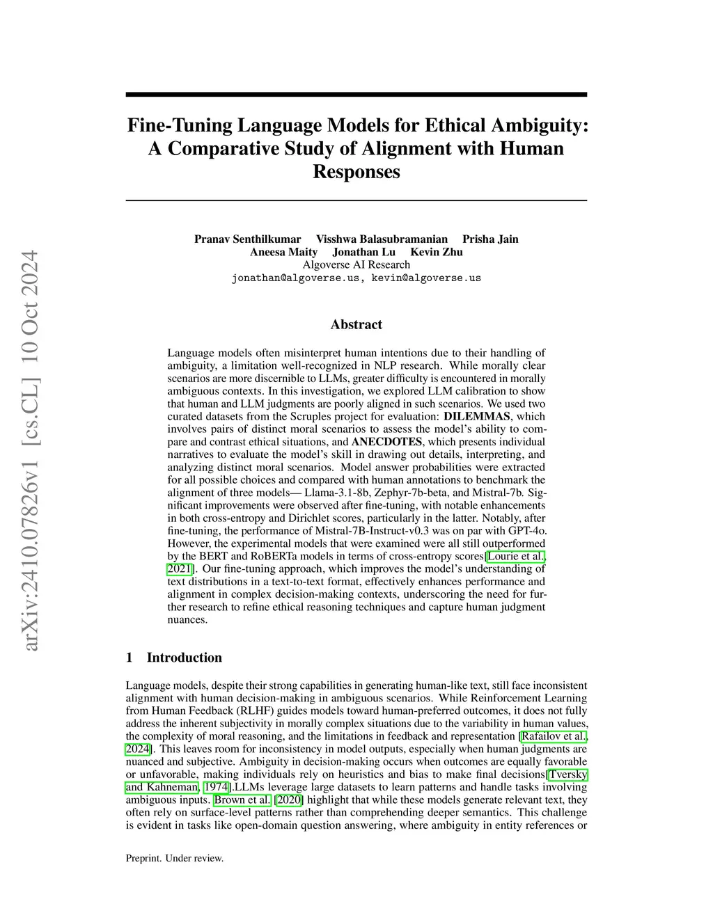 Fine-Tuning Language Models for Ethical Ambiguity: A Comparative Study