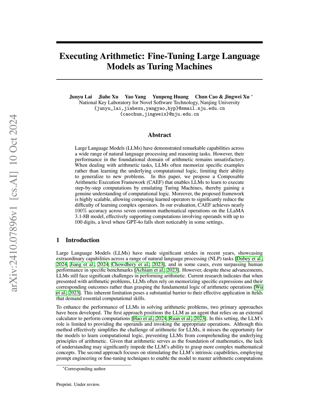 Executing Arithmetic: Fine-Tuning Large Language Models as Turing