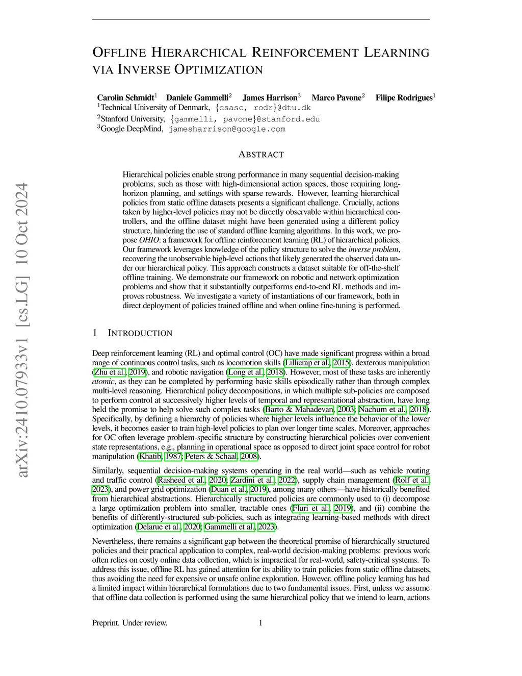 Offline Hierarchical Reinforcement Learning via Inverse Optimization