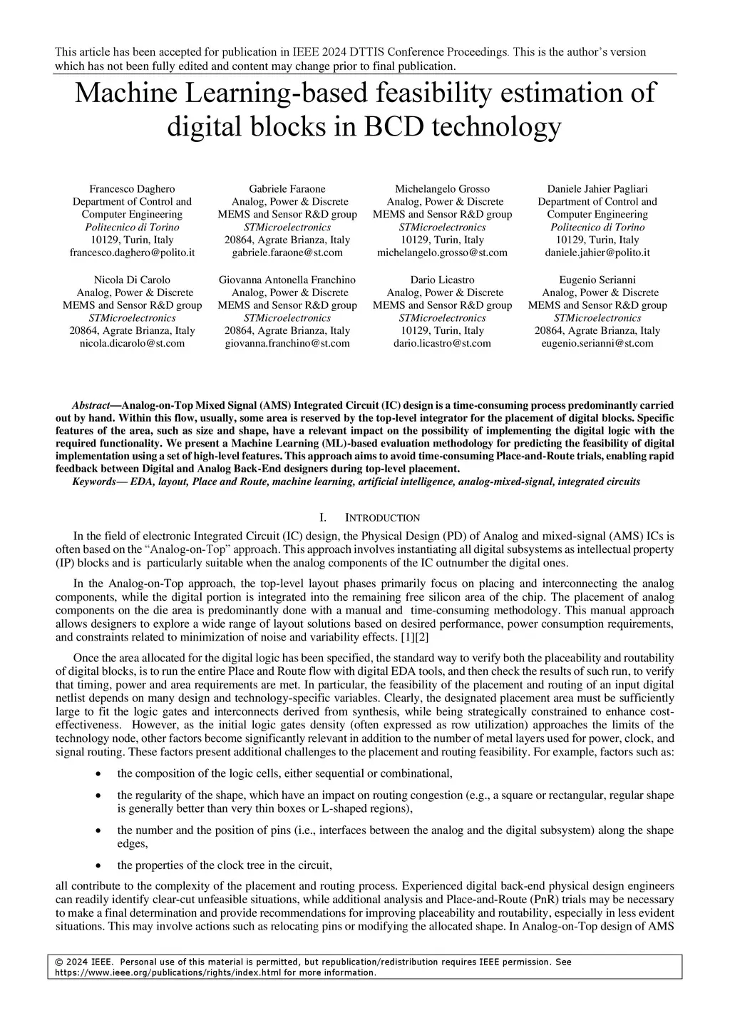 Machine Learning-based feasibility estimation of digital blocks in BCD