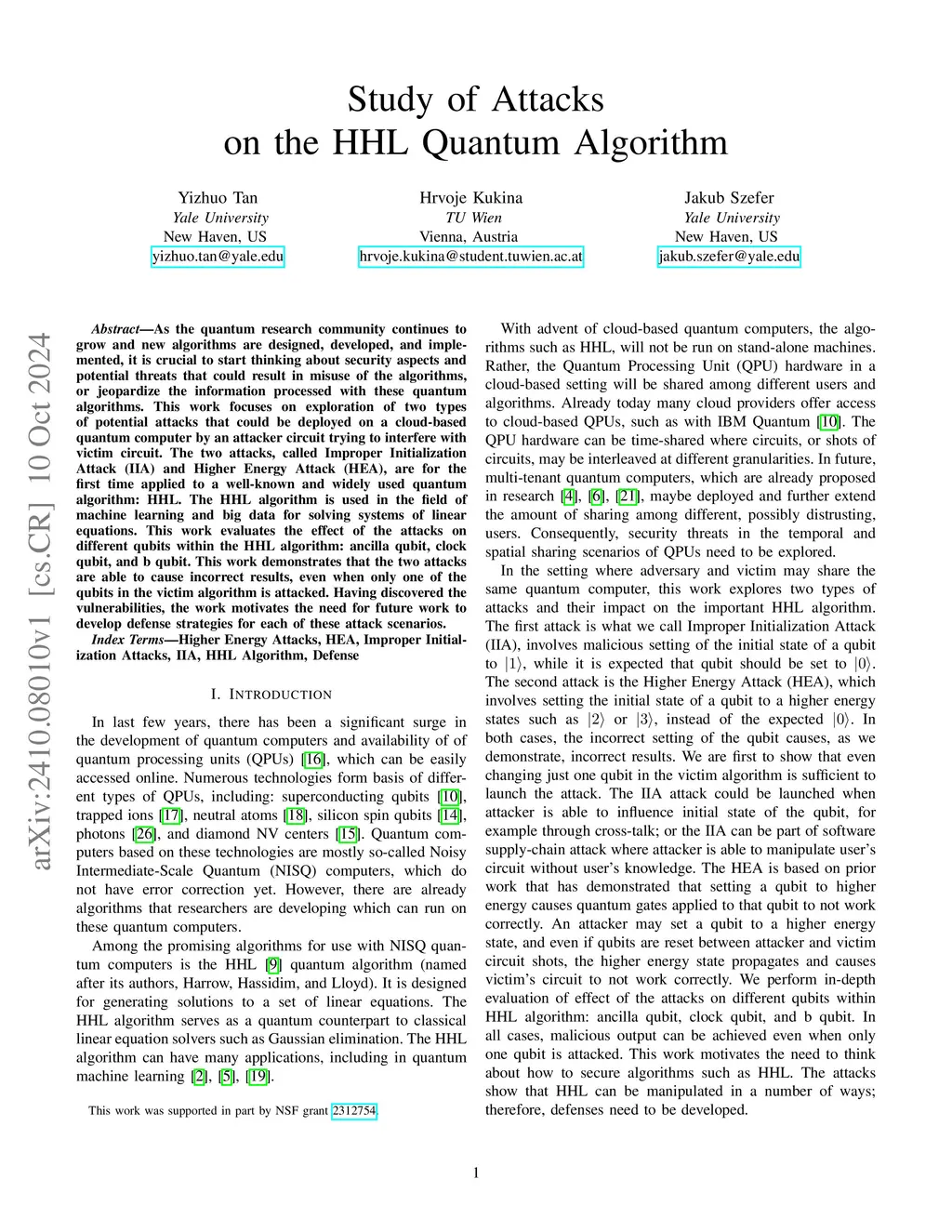 Securing HHL Quantum Algorithm against Quantum Computer Attacks