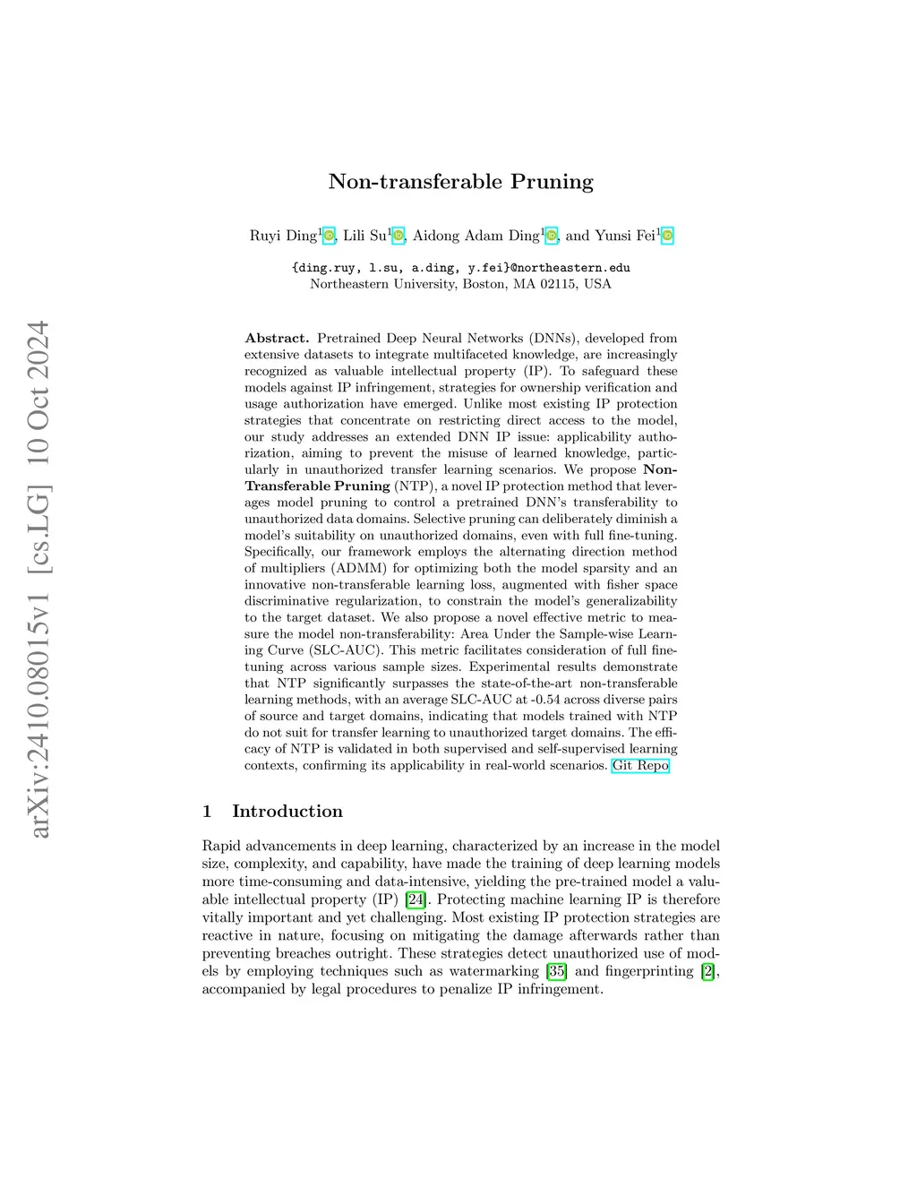 Non-transferable Pruning