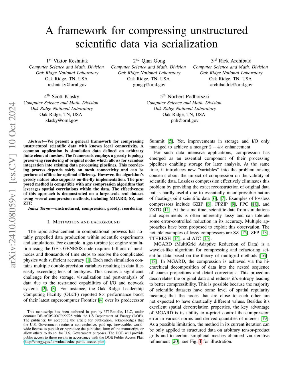 We present a general framework for compressing unstructured scientific data with known local connectivity. A common application is simulation data defined on arbitrary finite element meshes. The framework employs a greedy topology preserving reordering of original nodes which allows for seamless integration into existing data processing pipelines. This reordering process depends solely on mesh connectivity and can be performed offline for optimal efficiency. However, the algorithm's greedy nature also supports on-the-fly implementation. The proposed method is compatible with any compression algorithm that leverages spatial correlations within the data. The effectiveness of this approach is demonstrated on a large-scale real dataset using several compression methods, including MGARD, SZ, and ZFP.