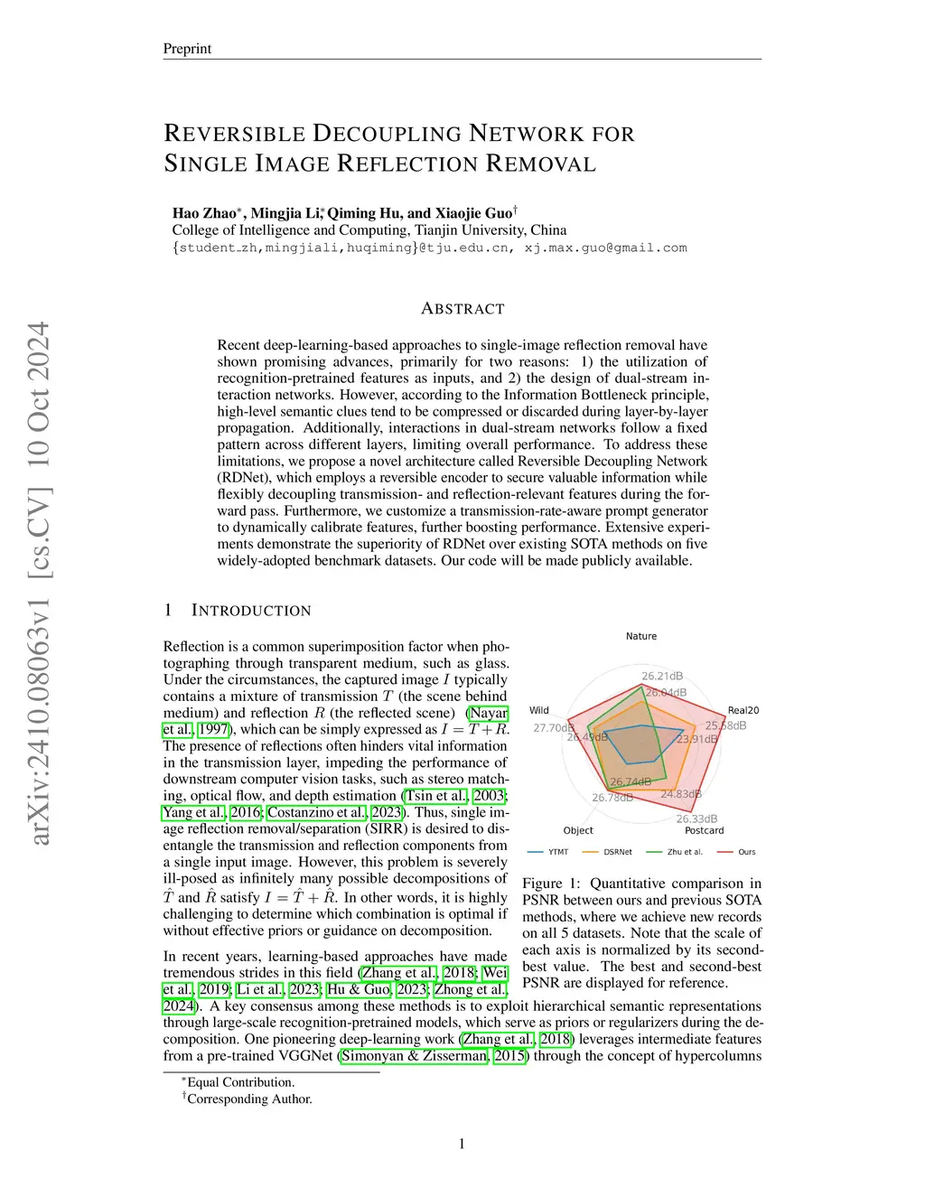 Reversible Decoupling Network for Single Image Reflection Removal