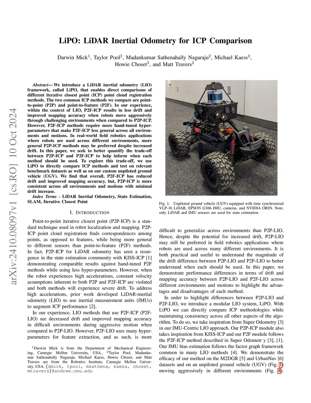 We introduce a LiDAR inertial odometry (LIO) framework, called LiPO, that enables direct comparisons of different iterative closest point (ICP) point cloud registration methods. The two common ICP methods we compare are point-to-point (P2P) and point-to-feature (P2F). In our experience, within the context of LIO, P2F-ICP results in less drift and improved mapping accuracy when robots move aggressively through challenging environments when compared to P2P-ICP. However, P2F-ICP methods require more hand-tuned hyper-parameters that make P2F-ICP less general across all environments and motions. In real-world field robotics applications where robots are used across different environments, more general P2P-ICP methods may be preferred despite increased drift. In this paper, we seek to better quantify the trade-off between P2P-ICP and P2F-ICP to help inform when each method should be used. To explore this trade-off, we use LiPO to directly compare ICP methods and test on relevant benchmark datasets as well as on our custom unpiloted ground vehicle (UGV). We find that overall, P2F-ICP has reduced drift and improved mapping accuracy, but, P2P-ICP is more consistent across all environments and motions with minimal drift increase.